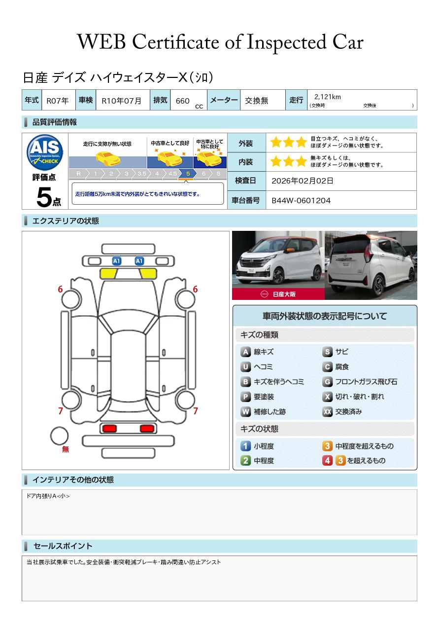 「車両状態証明書」は、査定協会監修のプロの検査員が公正かつ確かな基準で検査した”安心の証”です。