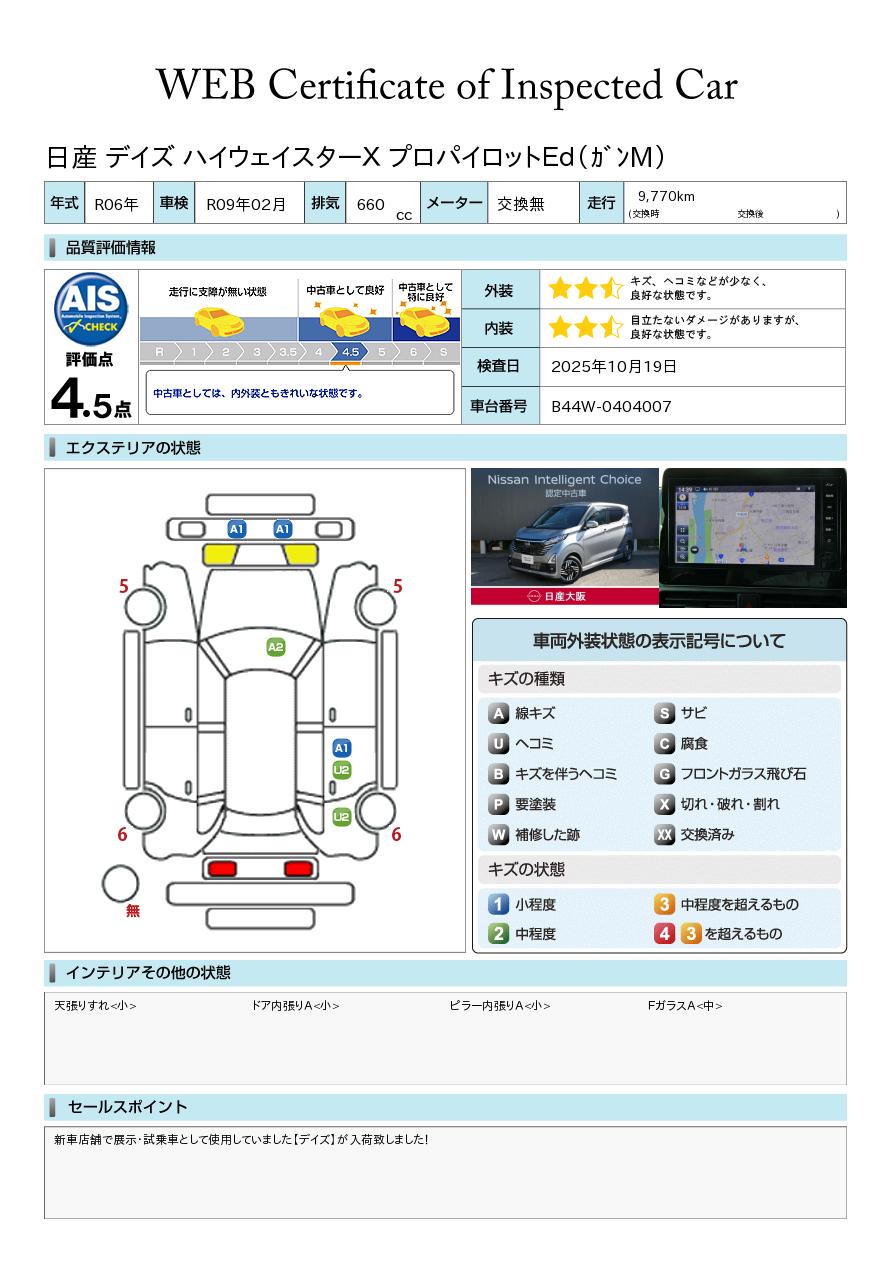 新車店舗で展示・試乗車として使用していました【デイズ】が入荷致しました!お支払い総額は大阪府内での基本お見積もりです。他府県登録も可能ですのでお気軽にお問い合わせください。