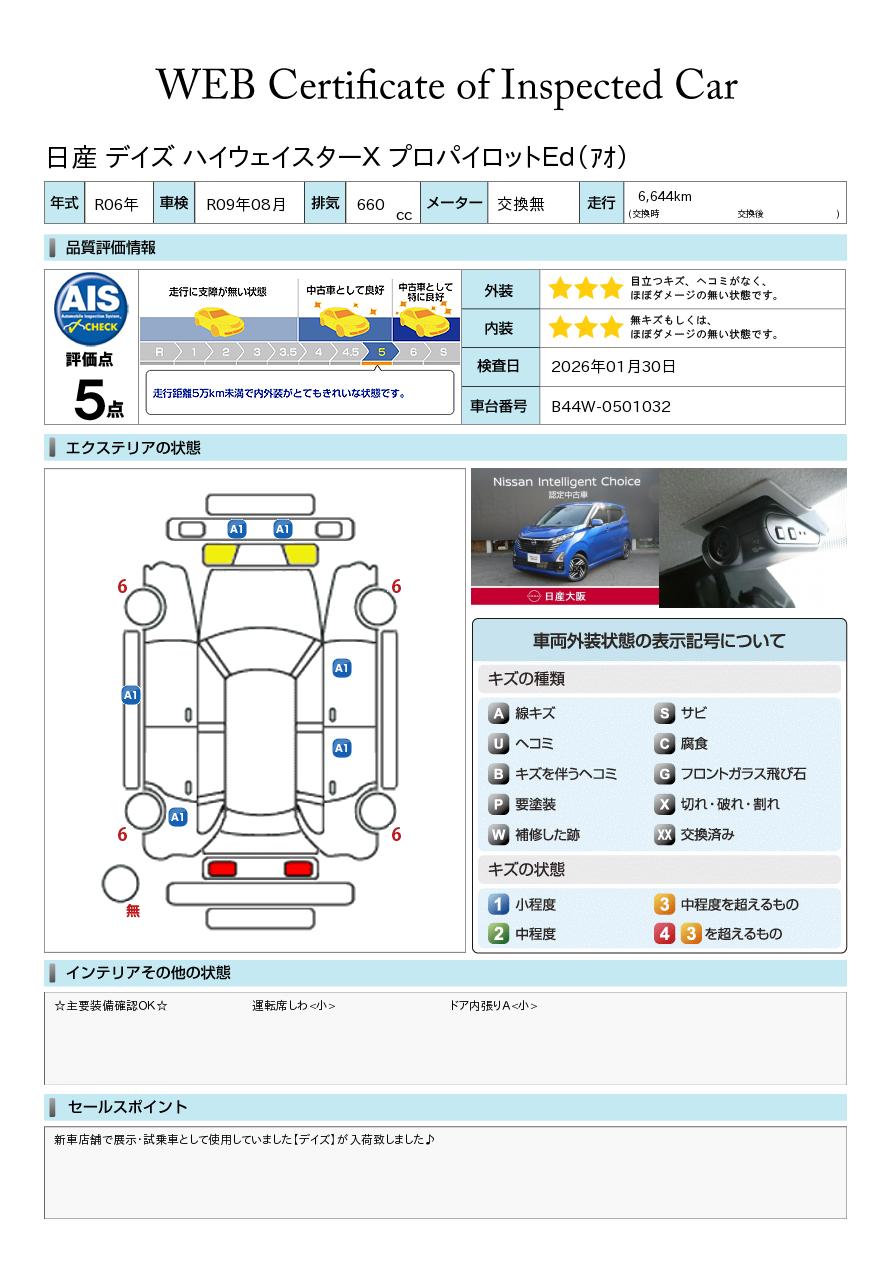 新車店舗で展示・試乗車として使用していました【デイズ】が入荷致しました♪お支払い総額は大阪府内での基本お見積もりです。他府県登録も可能ですのでお気軽にお問い合わせください。