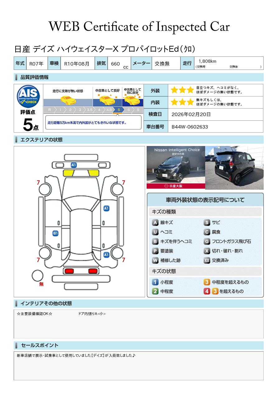 新車店舗で展示・試乗車として使用していました【デイズ】が入荷致しました♪お支払い総額は大阪府内での基本お見積もりです。他府県登録も可能ですのでお気軽にお問い合わせください。