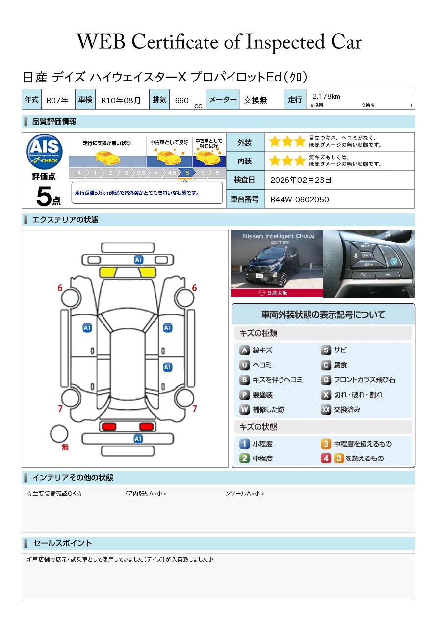 新車店舗で展示・試乗車として使用していました【デイズ】が入荷致しました♪お支払い総額は大阪府内での基本お見積もりです。他府県登録も可能ですのでお気軽にお問い合わせください。