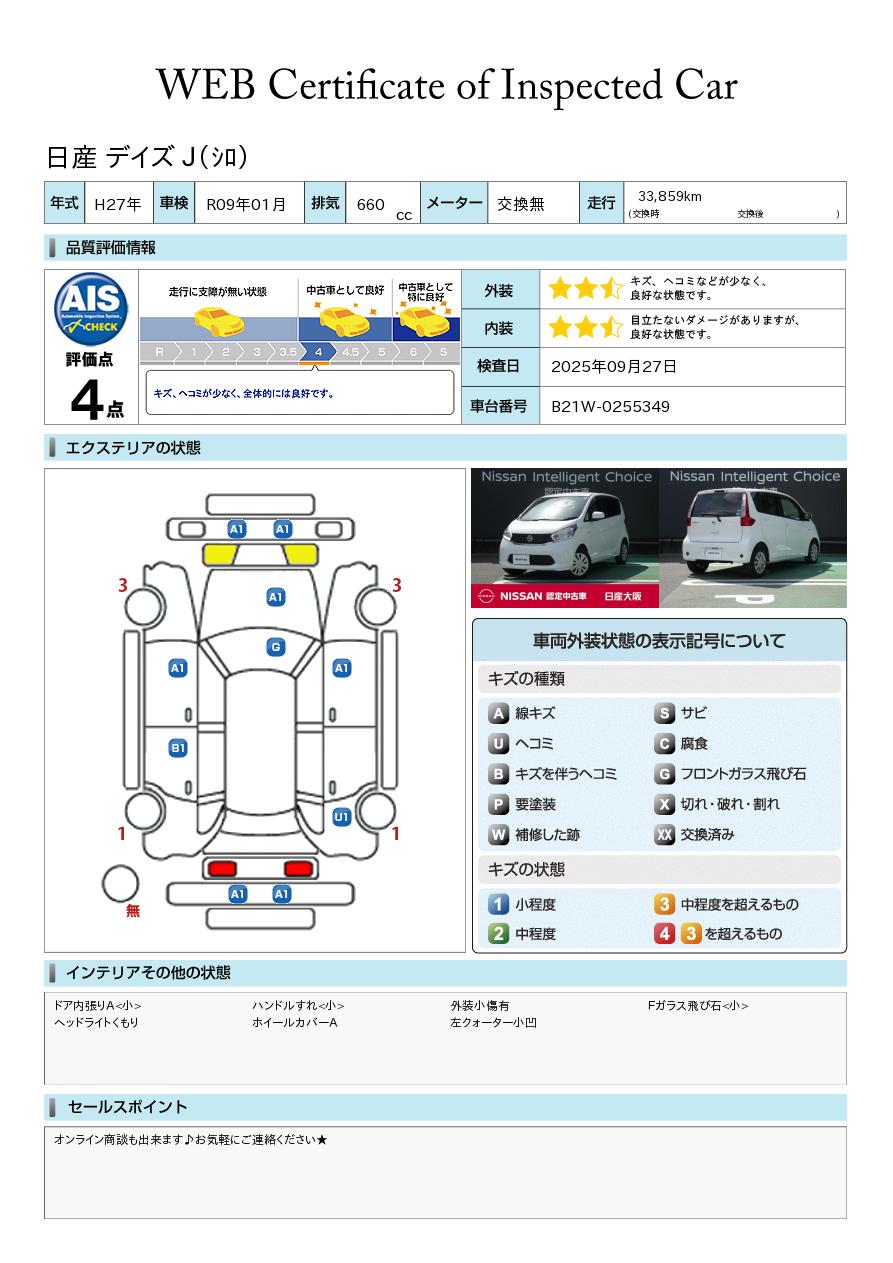 デイズ 660cc 660 J リモコンキー プライバシーガラス 日産純
