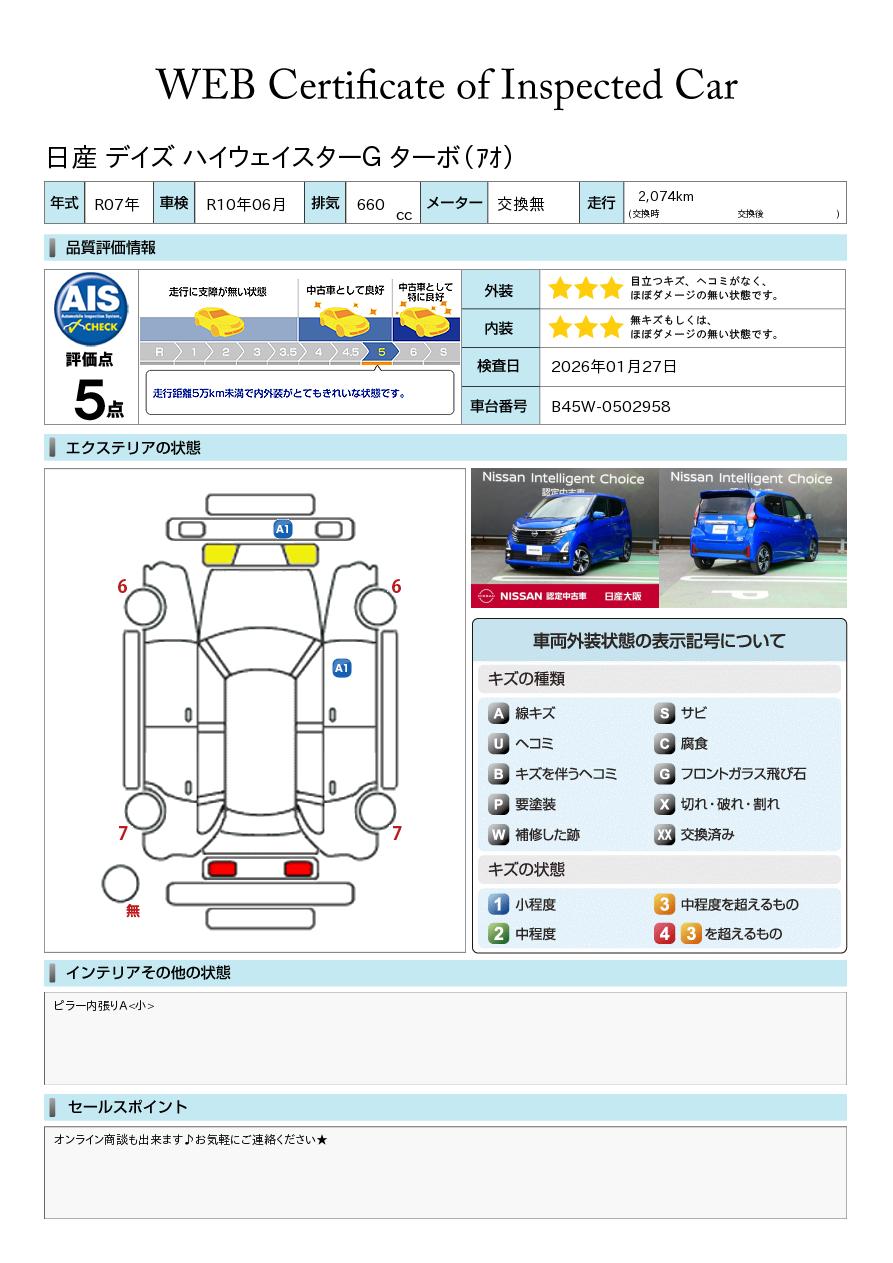 デイズ 660cc 660 ハイウェイスターGターボ 日産純正メモリーナビ 日産純正前室内後方