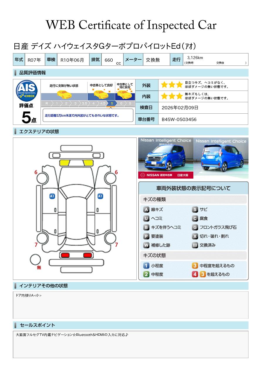 「車両状態証明書」は、査定協会監修のプロの検査員が公正かつ確かな基準で検査した”安心の証”です。
