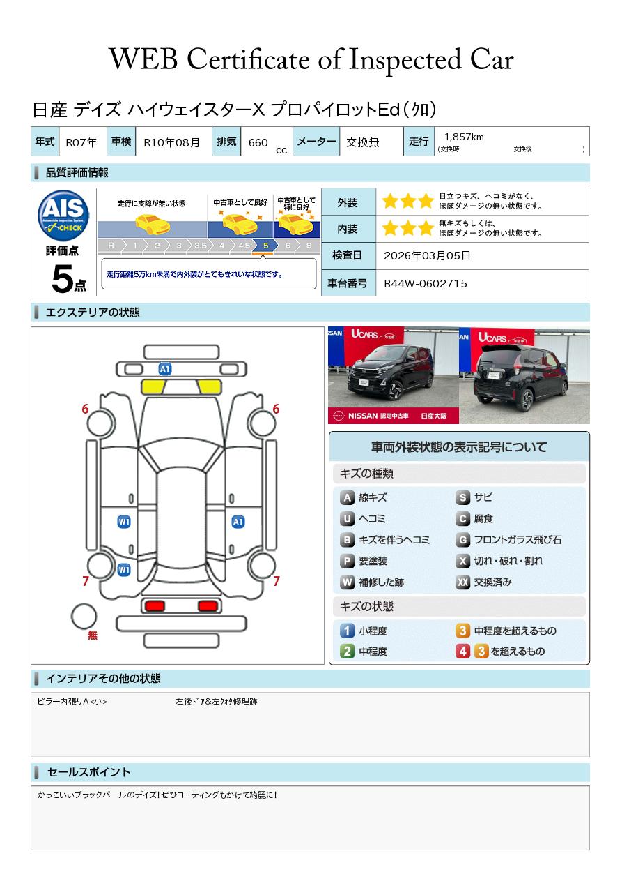 「車両状態証明書」は、査定協会監修のプロの検査員が公正かつ確かな基準で検査した”安心の証”です。