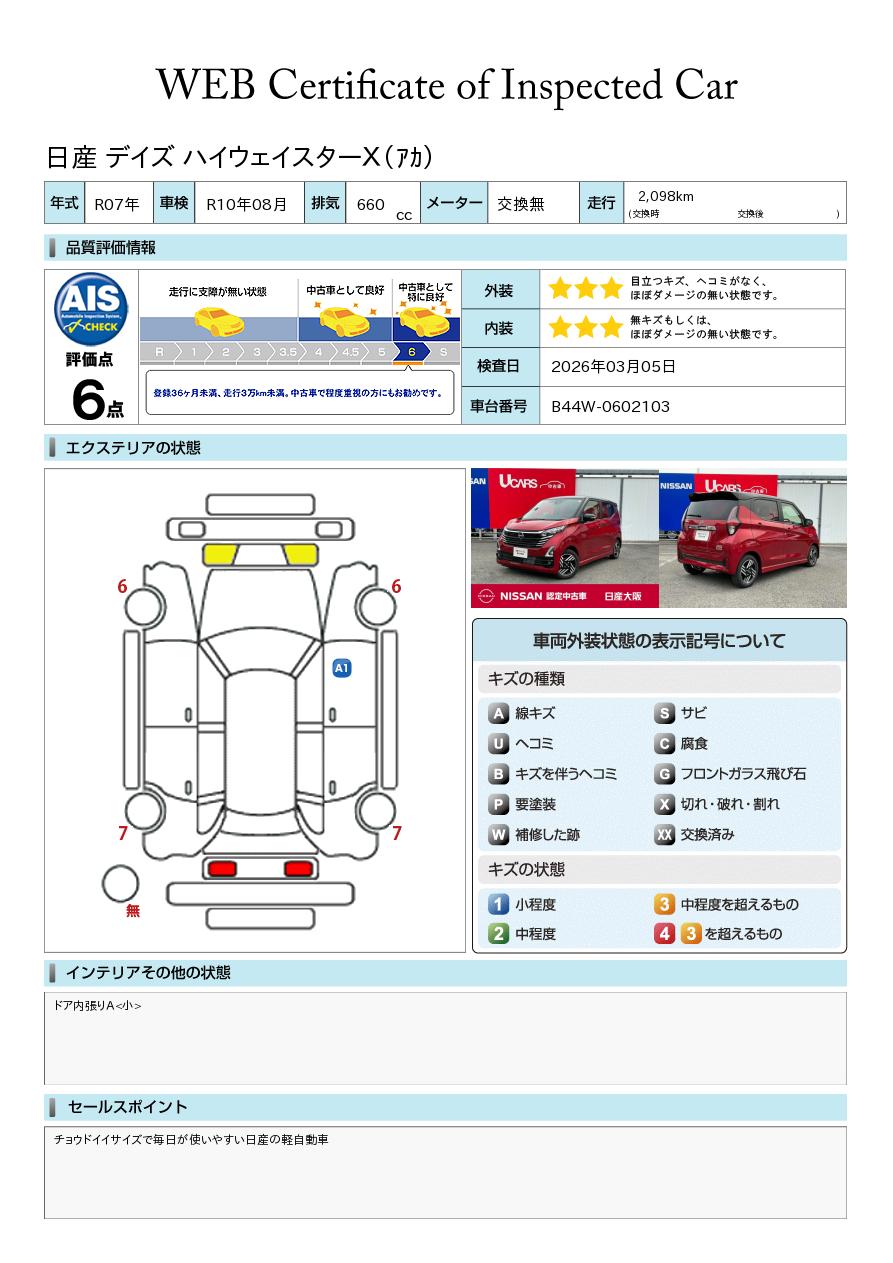 「車両状態証明書」は、査定協会監修のプロの検査員が公正かつ確かな基準で検査した”安心の証”です。