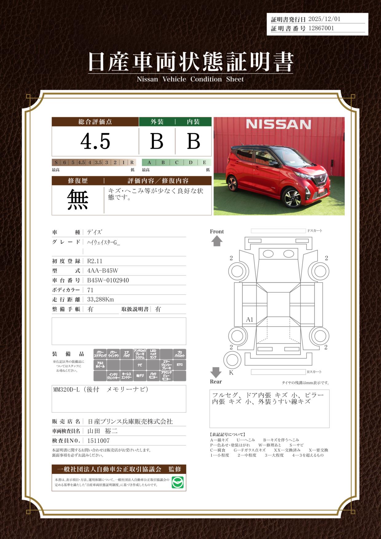 お車の詳しい状態は電話などいただければ、担当営業より写真でお伝え致します踏み間違い防止 衝突被害軽減ブレーキ 前後障害物センサー プロパイロット アラウンドビューモニター