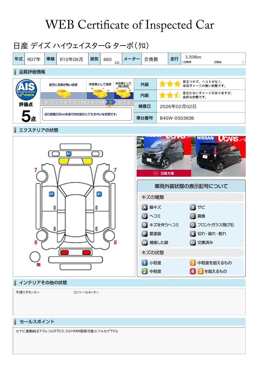 現状括弧書き内の年月まで車検有効期限が残っていますが、ご成約時に新しく車検を取り直します。なお取り直しの費用は車両価格に含まれています。