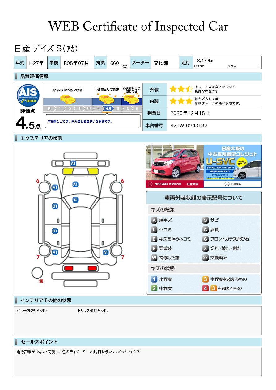 日産自動車認定の中古車販売店です。