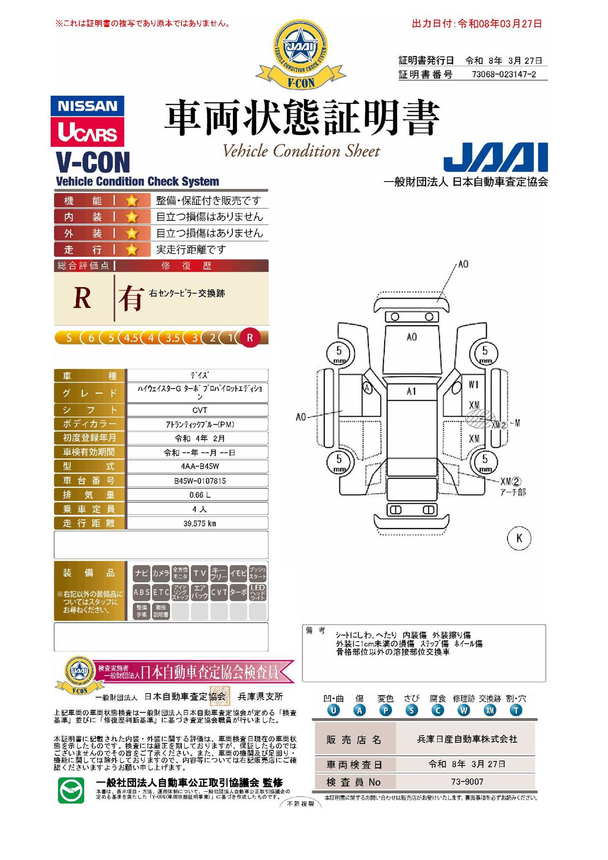 現状括弧書き内の年月まで車検有効期限が残っていますが、ご成約時に新しく車検を取り直します。なお取り直しの費用は車両価格に含まれています。