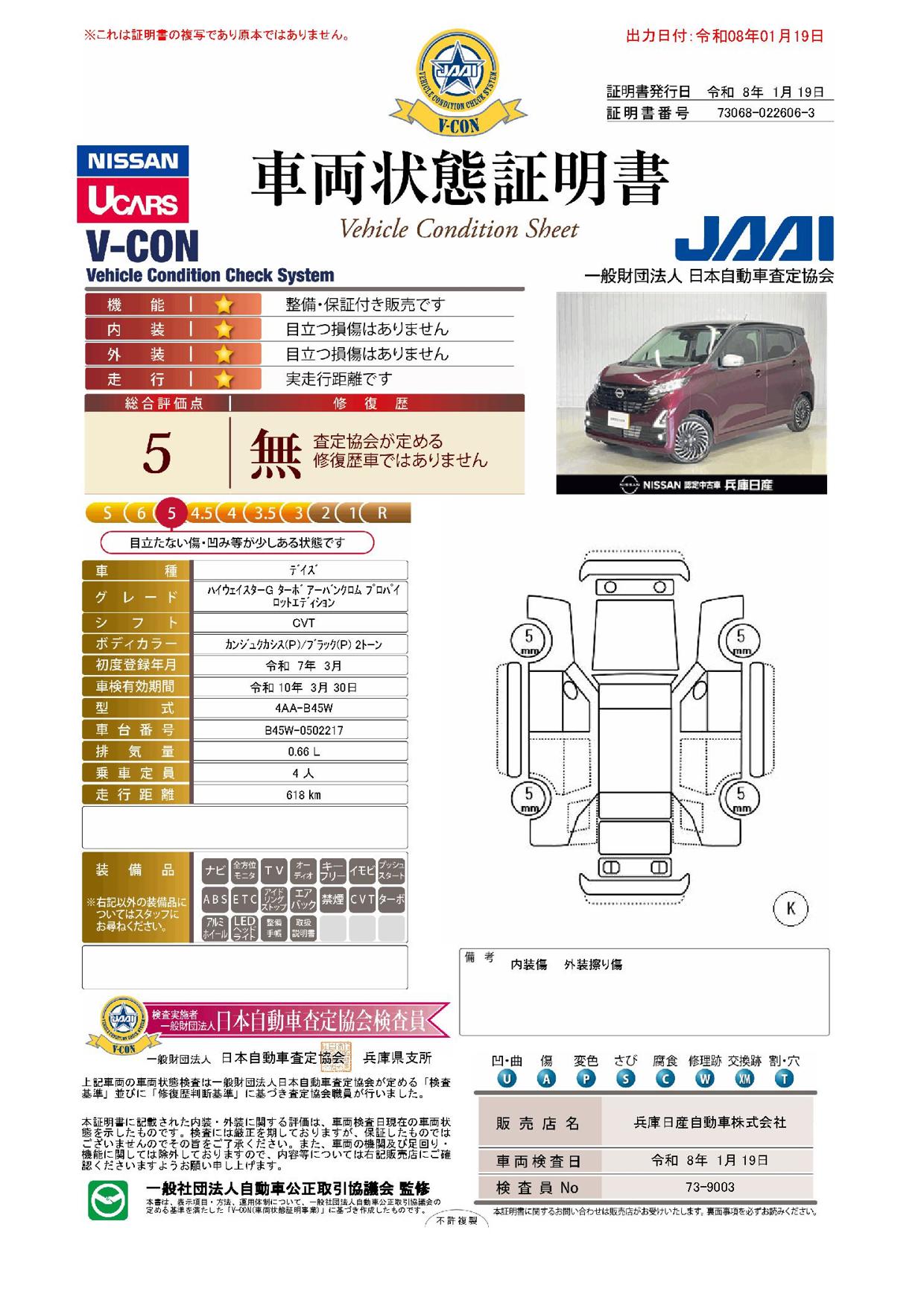 現状括弧書き内の年月まで車検有効期限が残っていますが、ご成約時に新しく車検を取り直します。なお取り直しの費用は車両価格に含まれています。