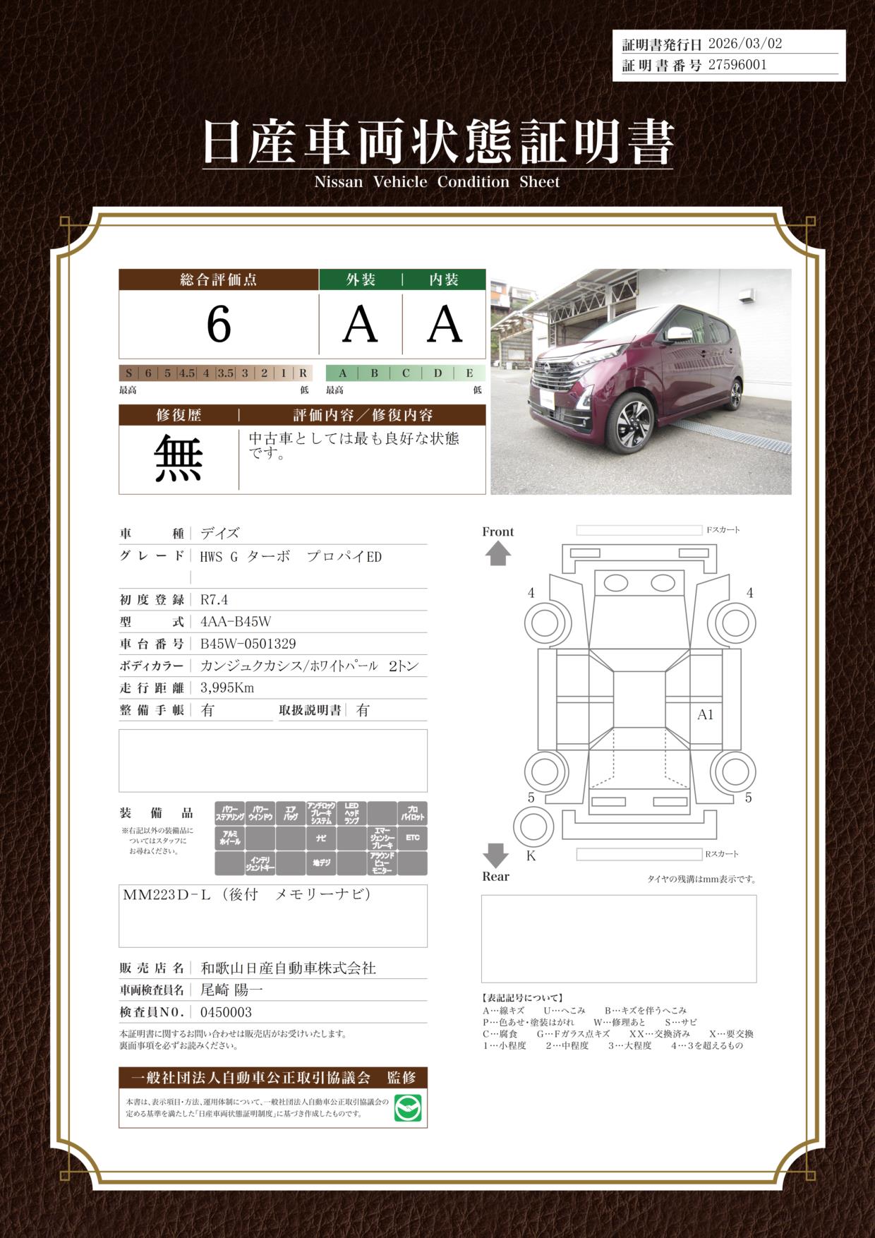 先進運転アシスト技術プロパイロットを搭載した日産 デイズ入荷お車の在庫、装備、傷の確認お問い合わせ無料 0078-6002-086373和歌山日産田辺マイカーまでご連絡下さい