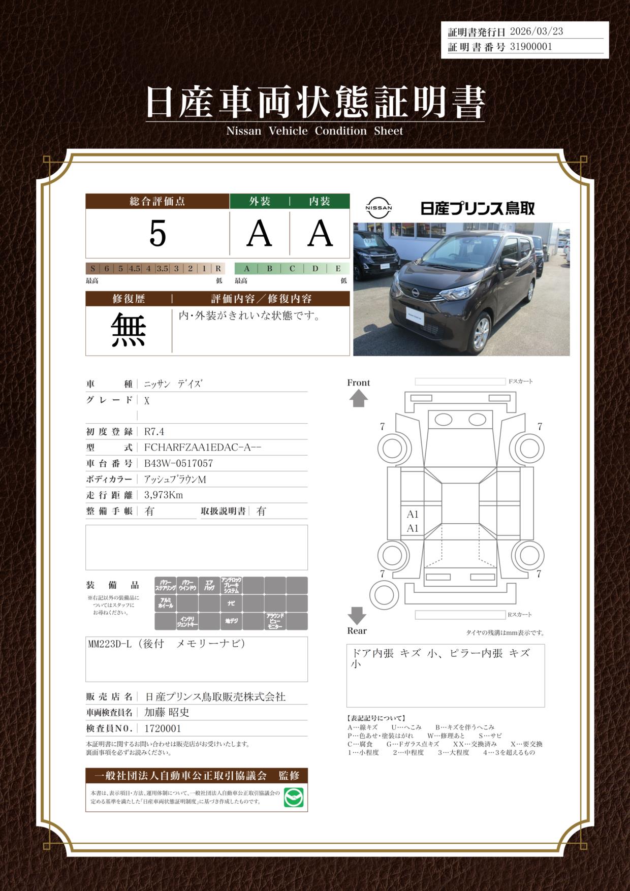 「車両状態証明書」は、査定協会監修のプロの検査員が公正かつ確かな基準で検査した”安心の証”です。