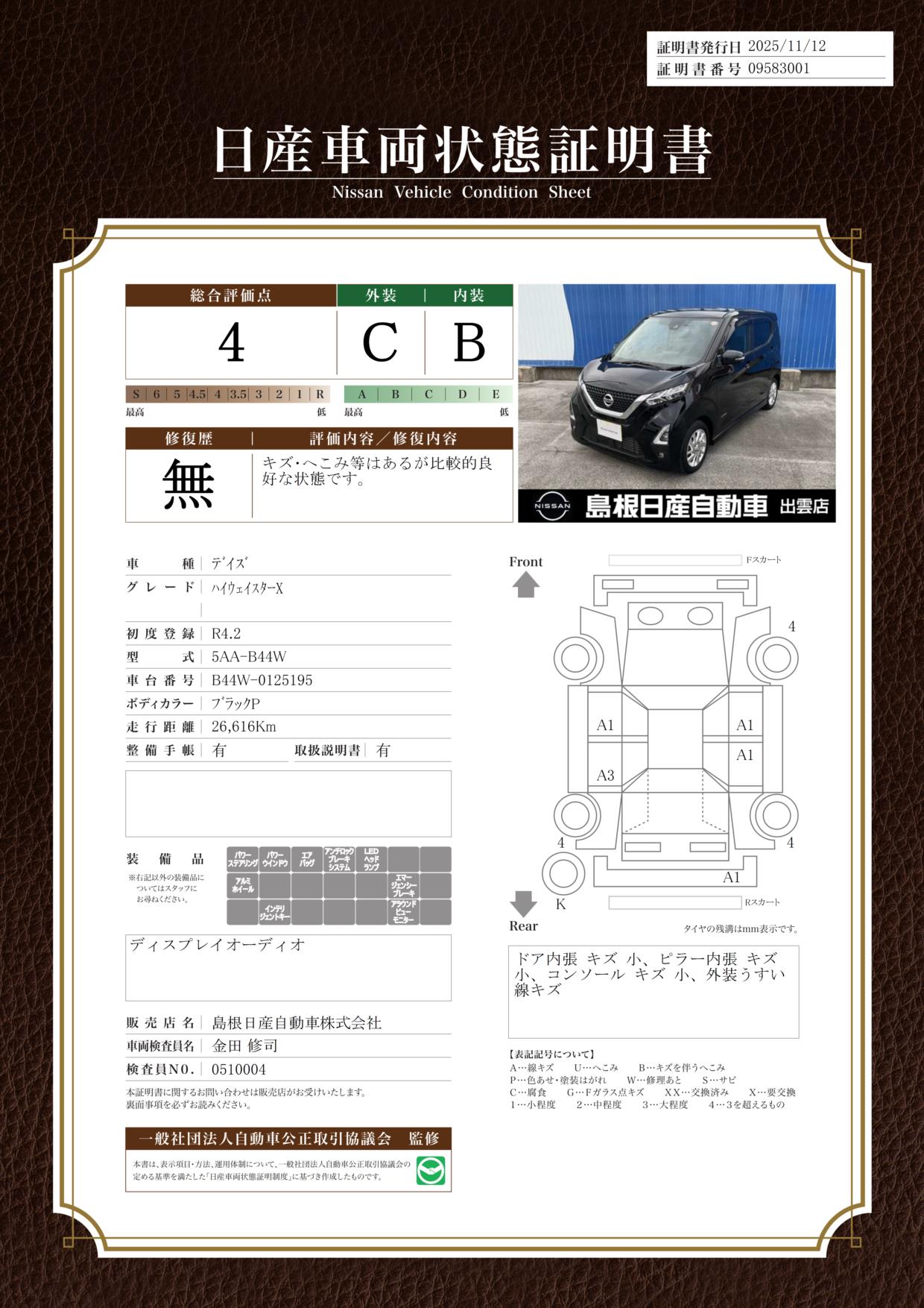 デイズ 660cc 660 X 純正メモリーナビ付き