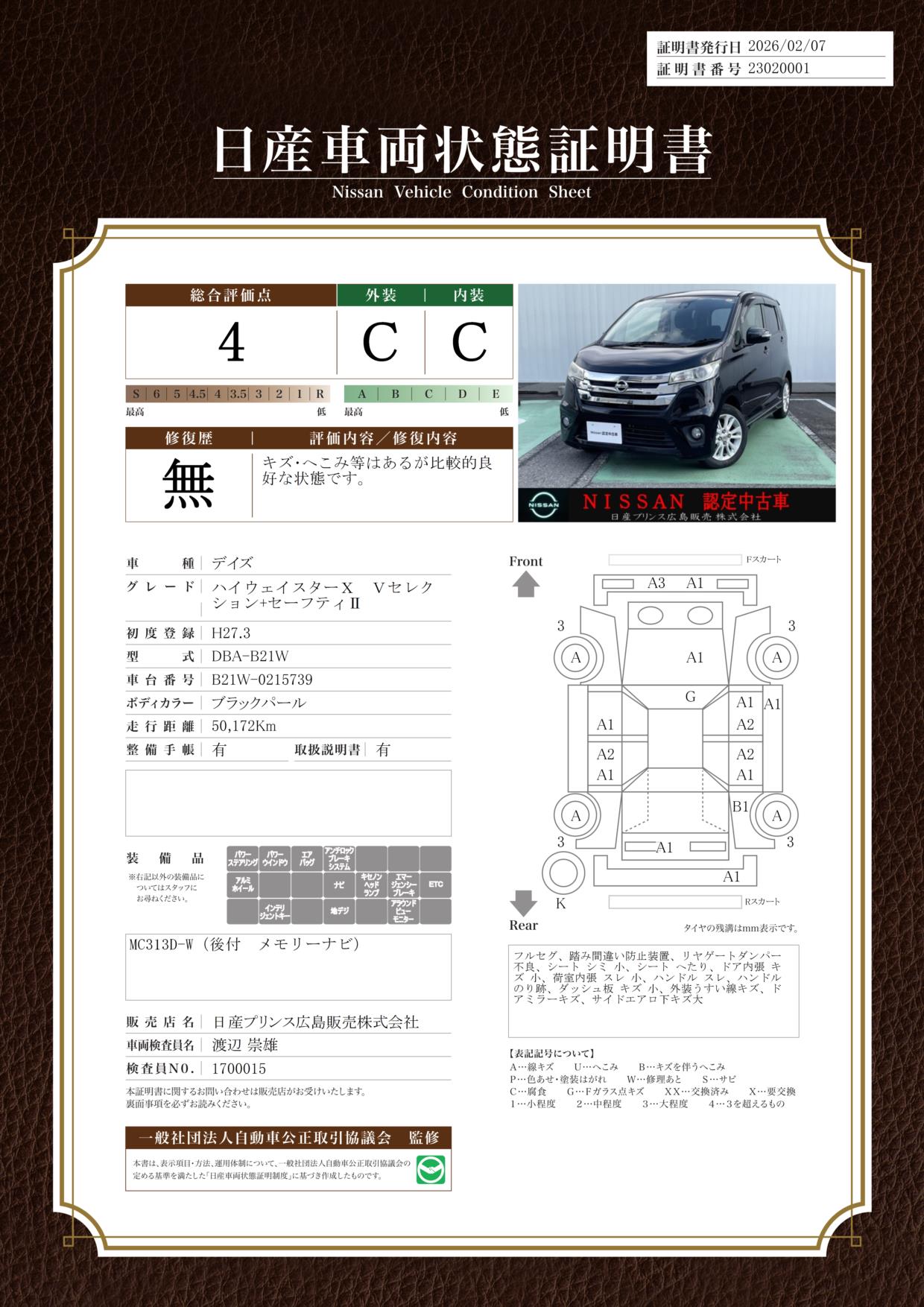 ☆ 中古車買うなら日産プリンス広島へ!満足と安心感をお届けします。 ☆☆ ディーラーならではの安心ネットワークでサポートいたします。 ☆