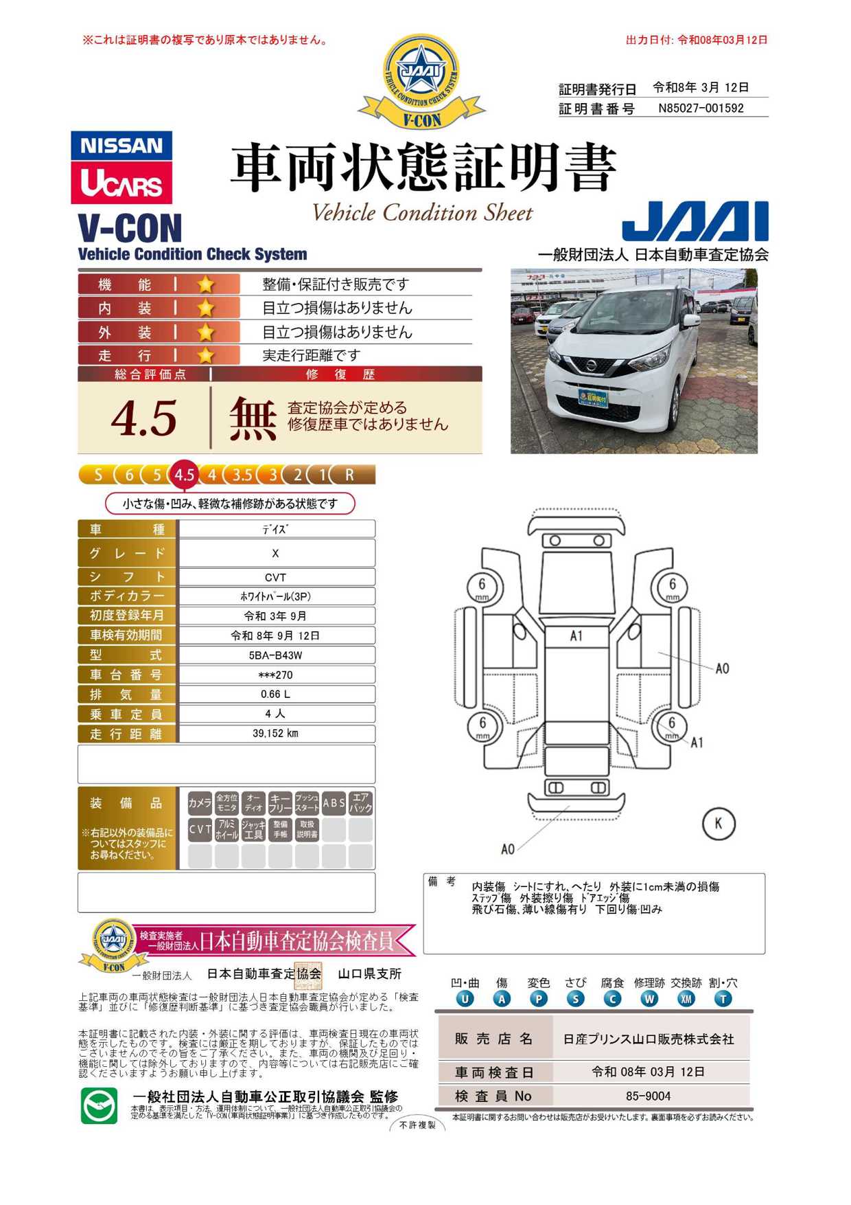 「車両状態証明書」は、査定協会監修のプロの検査員が公正かつ確かな基準で検査した”安心の証”です。
