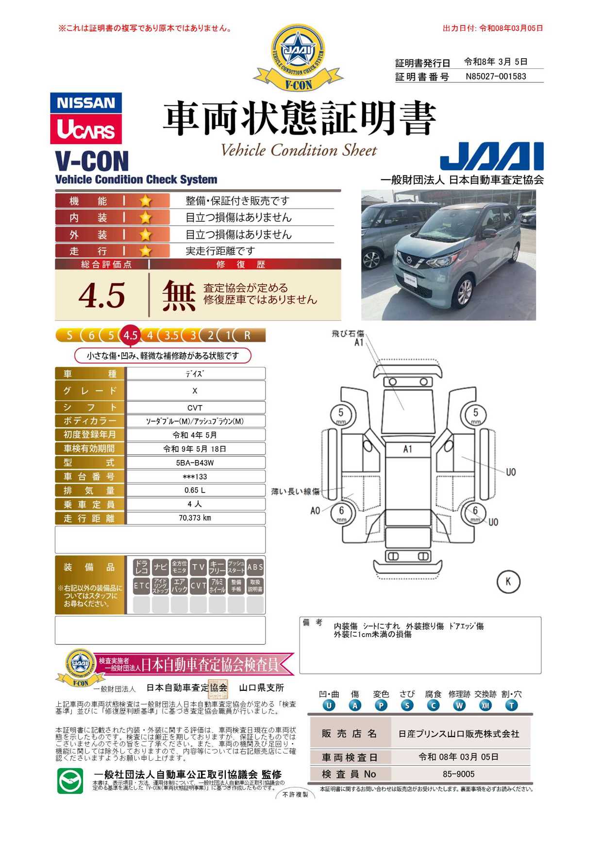 当店は日産中古車クオリティーショップ認定店です。お客様の車選びをお手伝いさせて頂きます。当店舗は山口県の中心部にございます。お車でご来店される際は中国自動車道小郡ICを降り、湯田温泉方面(左側)、国道9号線を走り、バイパス分かれを山陰道に入り5分ほどの所にございます。日産の整備士による、点検・整備後納車ですので安心してお選び下さい。また、アフターもお任せください。納車させて頂いてからが、本当のお付き合いだと思っております。ご不明な点やお気づきの点はお気軽にお電話下さい!皆様のご来店お待ちしております!