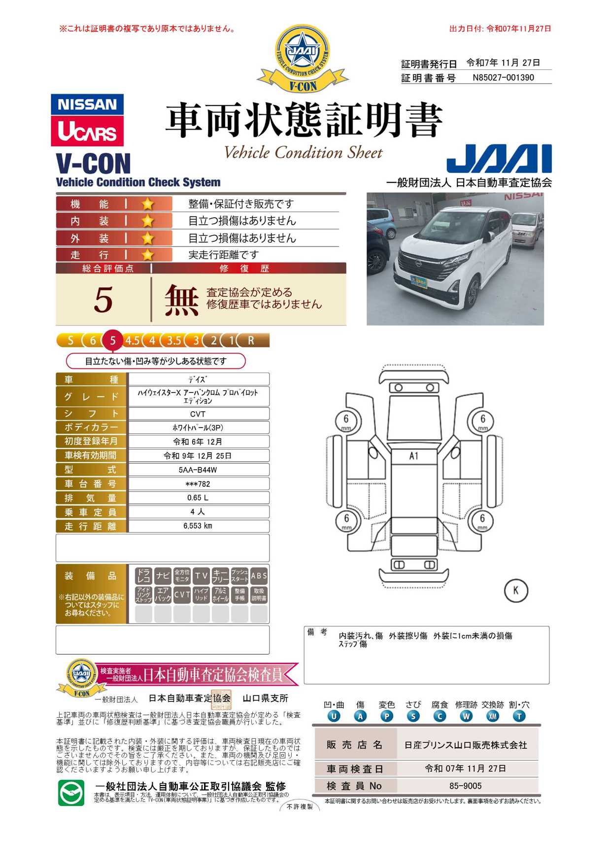 現状括弧書き内の年月まで車検有効期限が残っていますが、ご成約時に新しく車検を取り直します。なお取り直しの費用は車両価格に含まれています。