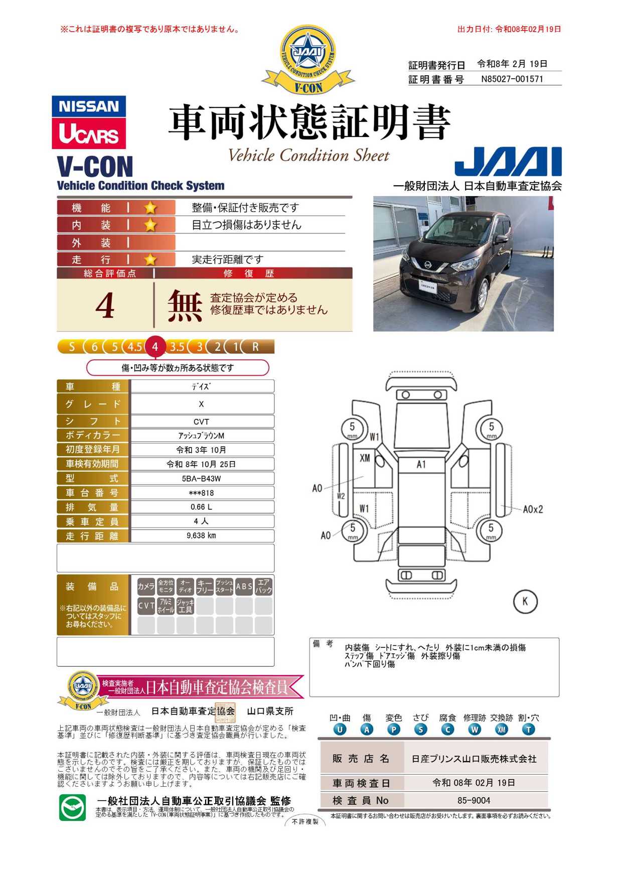 現状括弧書き内の年月まで車検有効期限が残っていますが、ご成約時に新しく車検を取り直します。なお取り直しの費用は車両価格に含まれています。