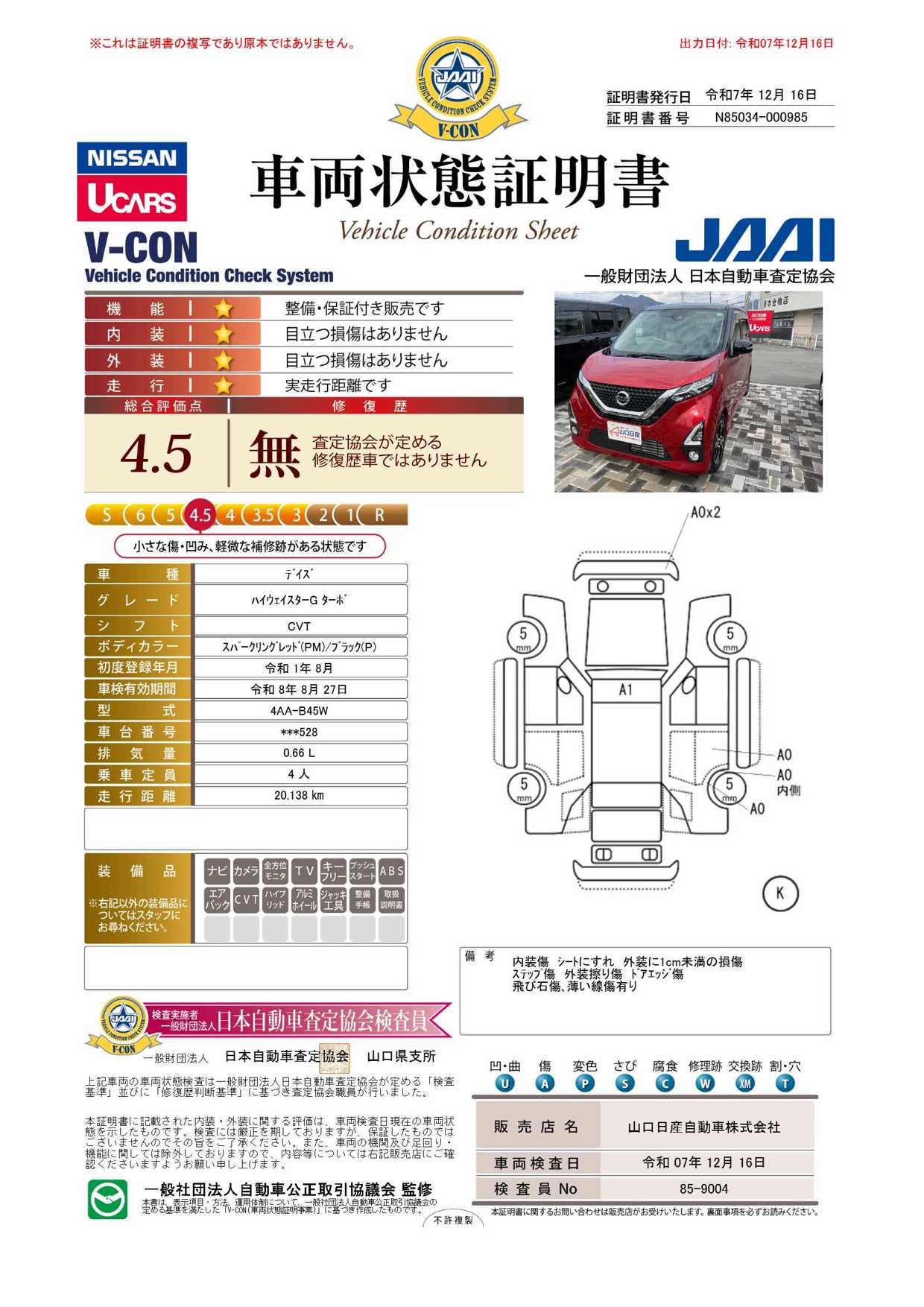 記載の有効期限まで車検が有効です。
