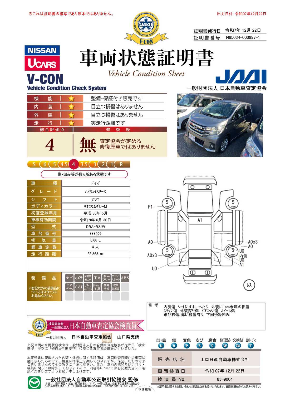 デイズ 660cc 660 S ワンオーナー・ナビ地デジ・CD