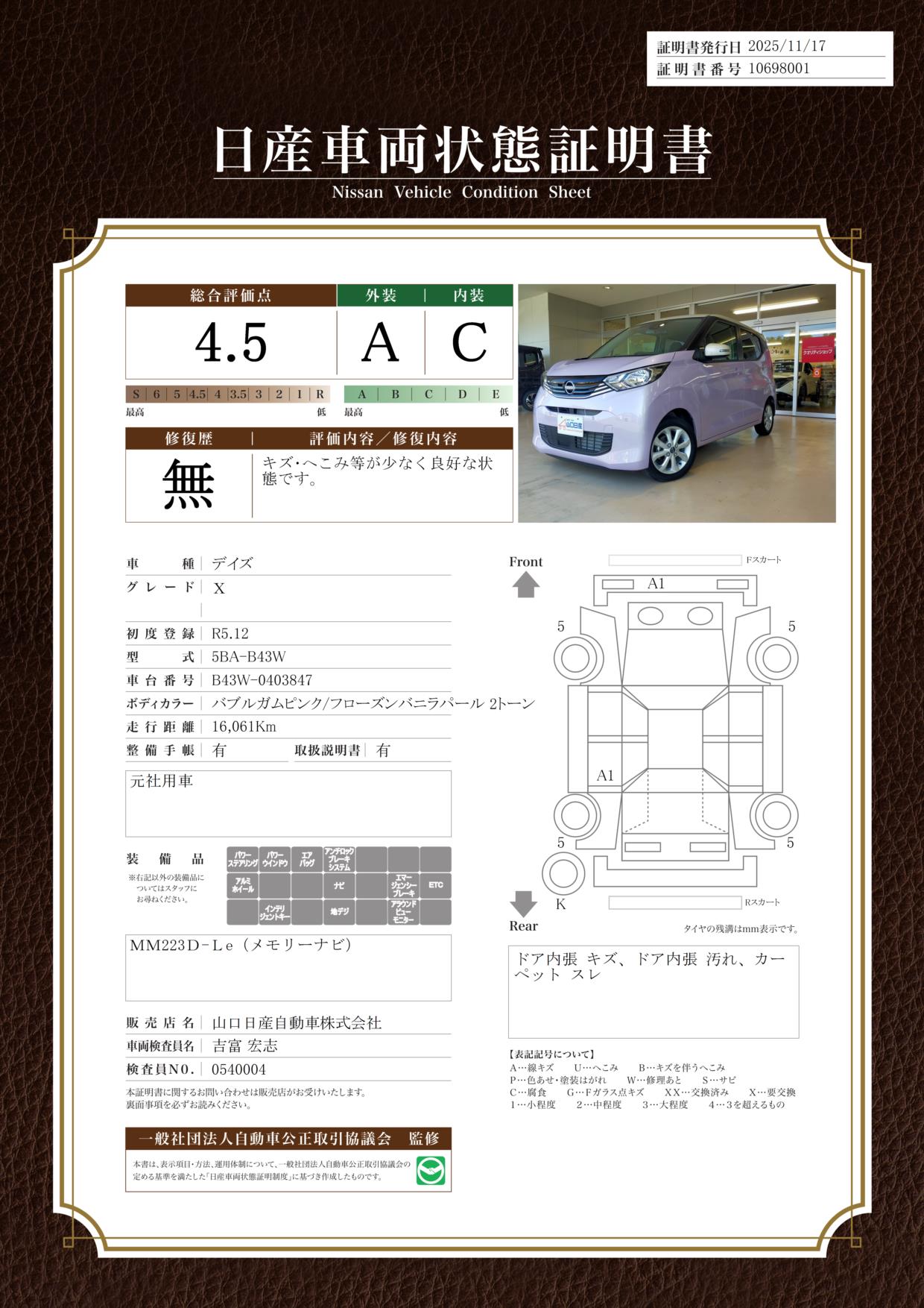 デイズ 660cc 660 X 日産オリジナルMナビ MM223D-Le 試乗車