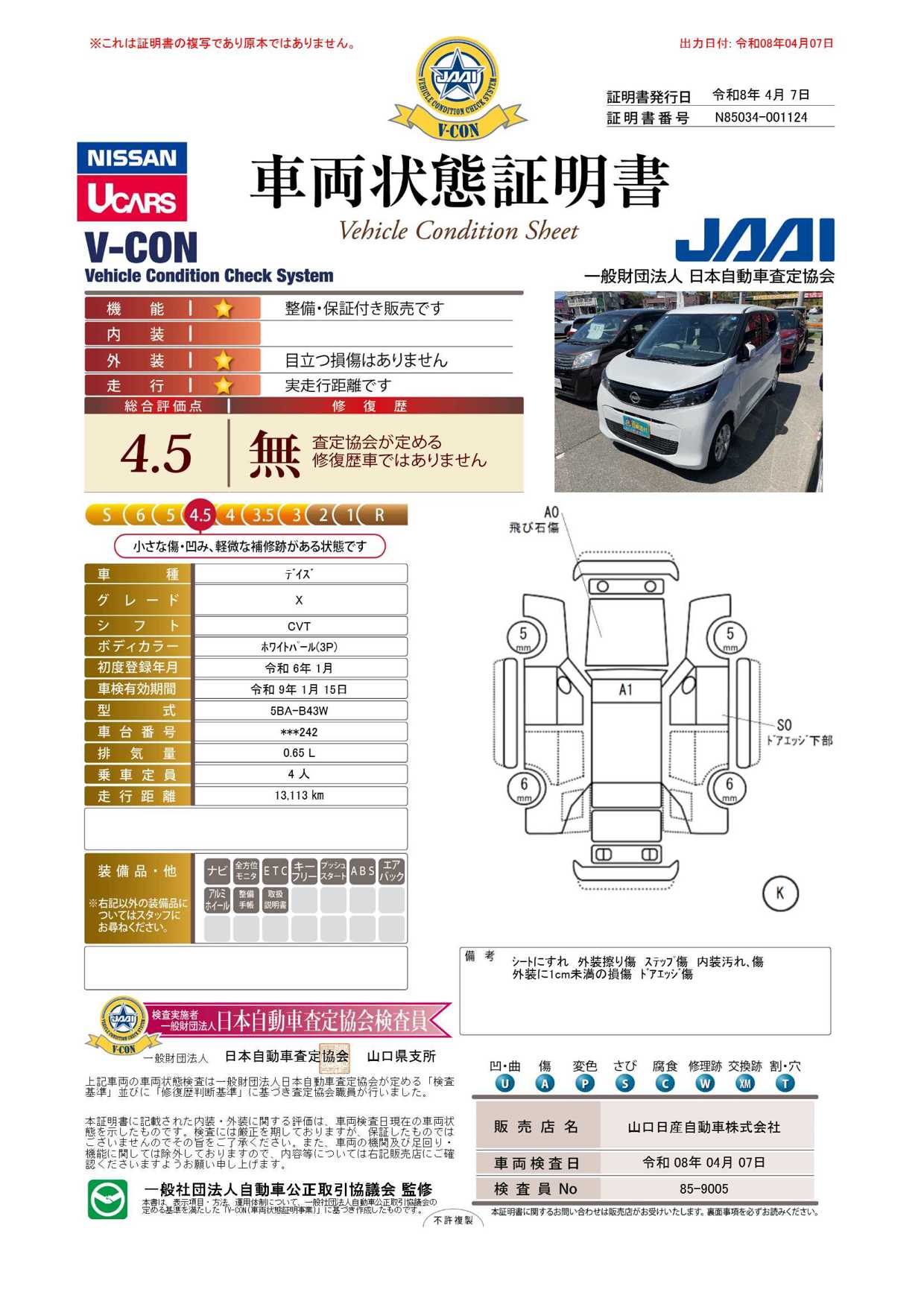 「車両状態証明書」は、査定協会監修のプロの検査員が公正かつ確かな基準で検査した”安心の証”です。