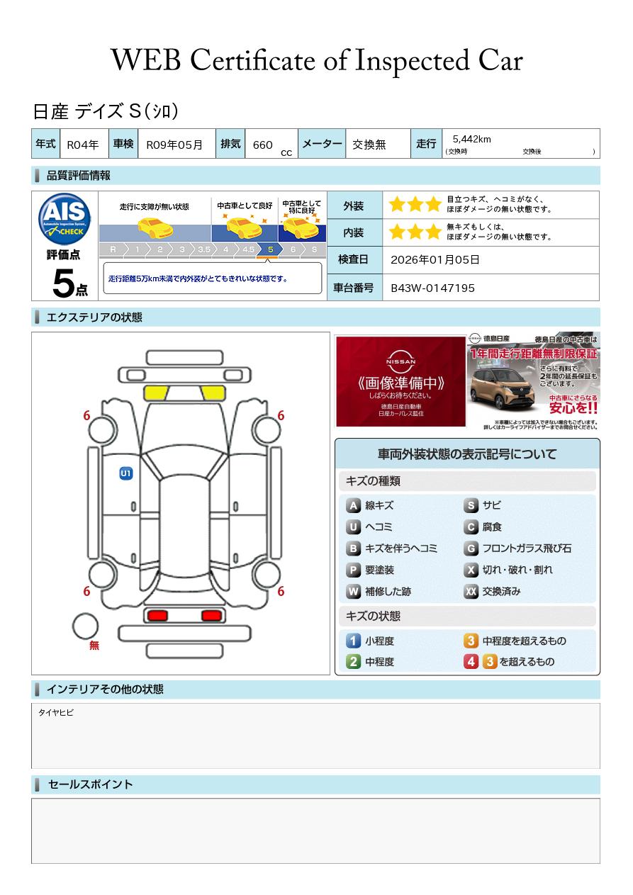 評価点イメージ : 走行距離5万kmまで内外装がとてもきれいな状態です。