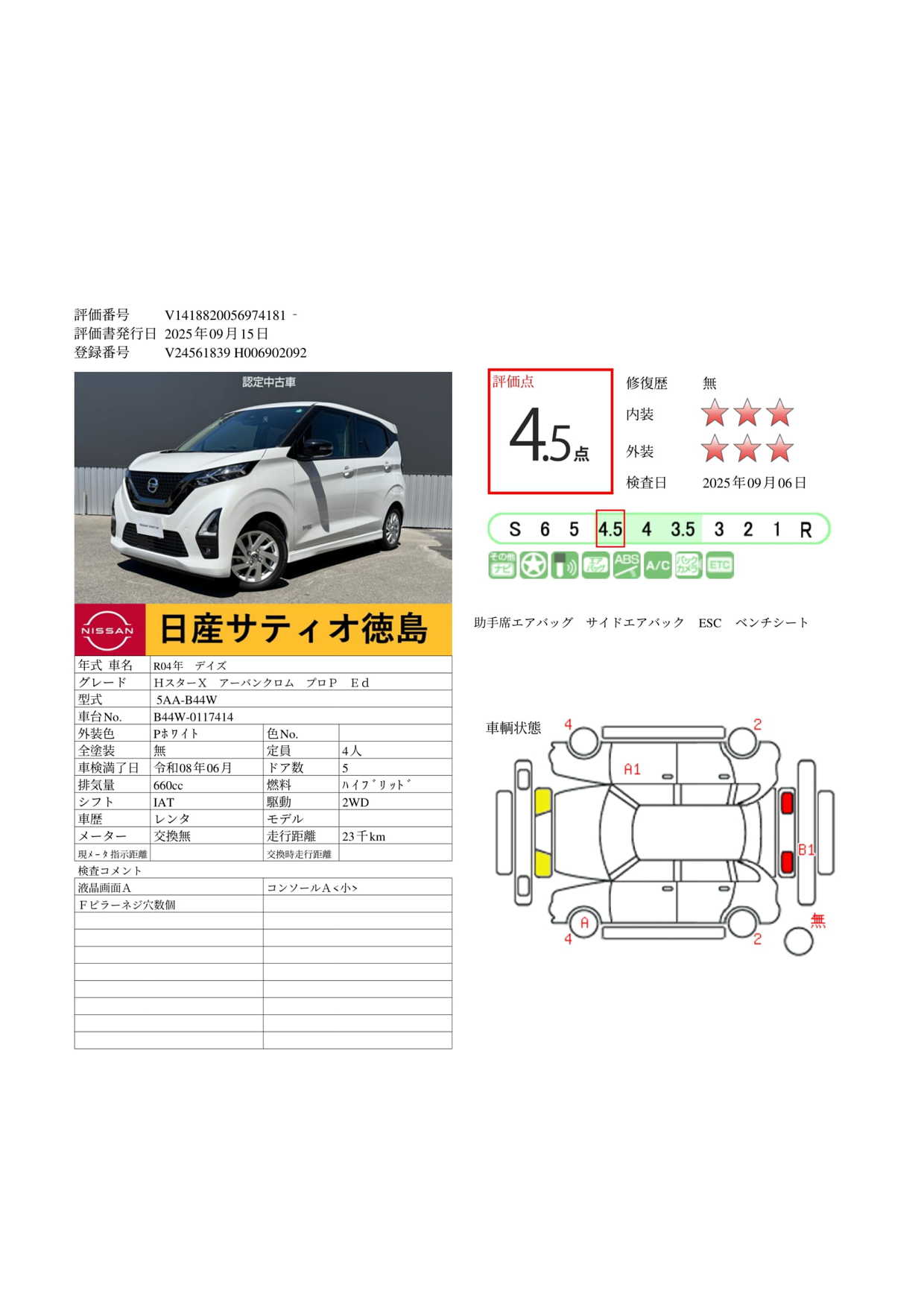 現状括弧書き内の年月まで車検有効期限が残っていますが、ご成約時に新しく車検を取り直します。なお取り直しの費用は車両価格に含まれています。