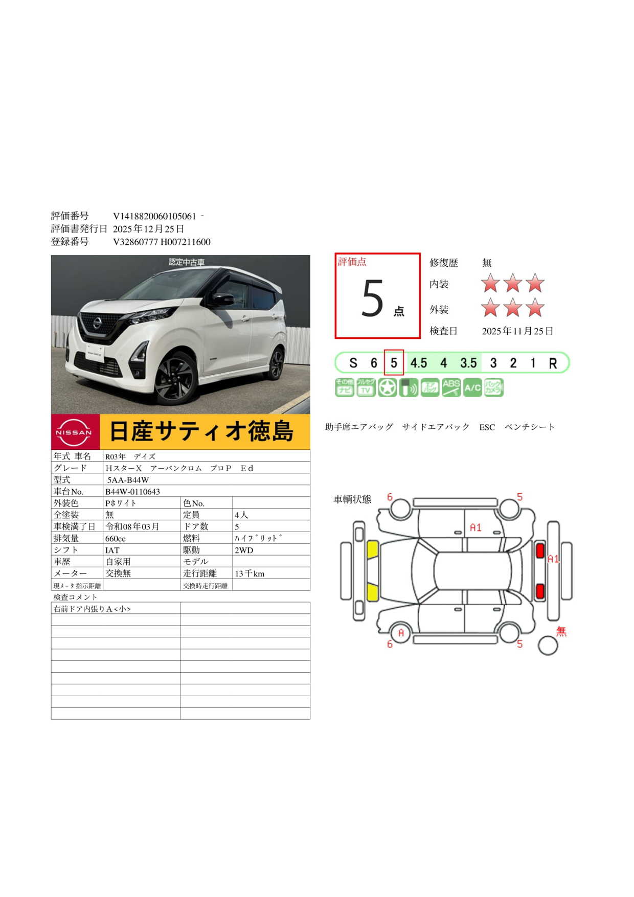 現状車検切れの状態であり、車検費用は車両価格とは別でご負担いただく必要があります。