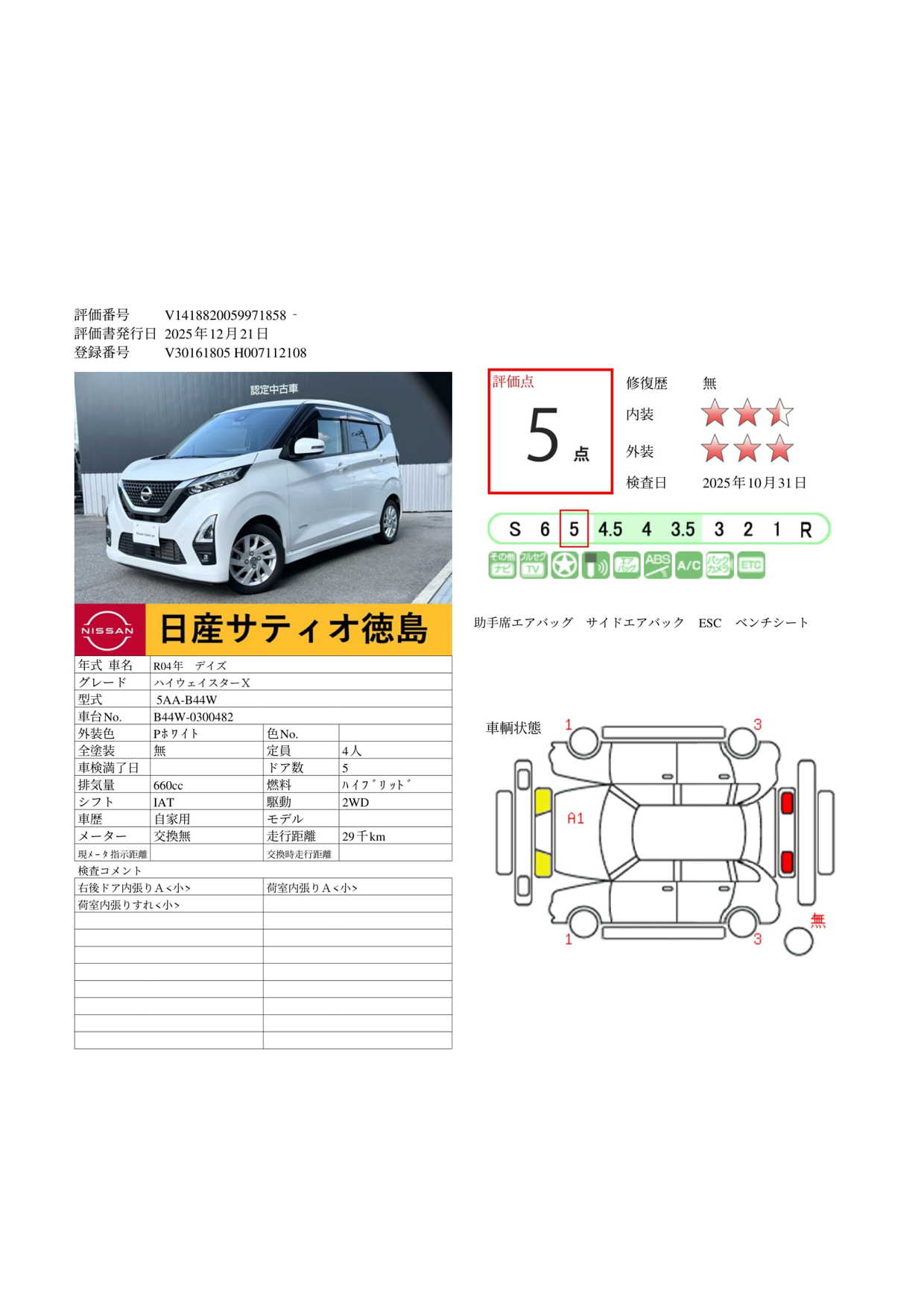 現状車検切れの状態ですが、ご成約時に新しく車検を実施します。車検費用は車両価格に含まれています。