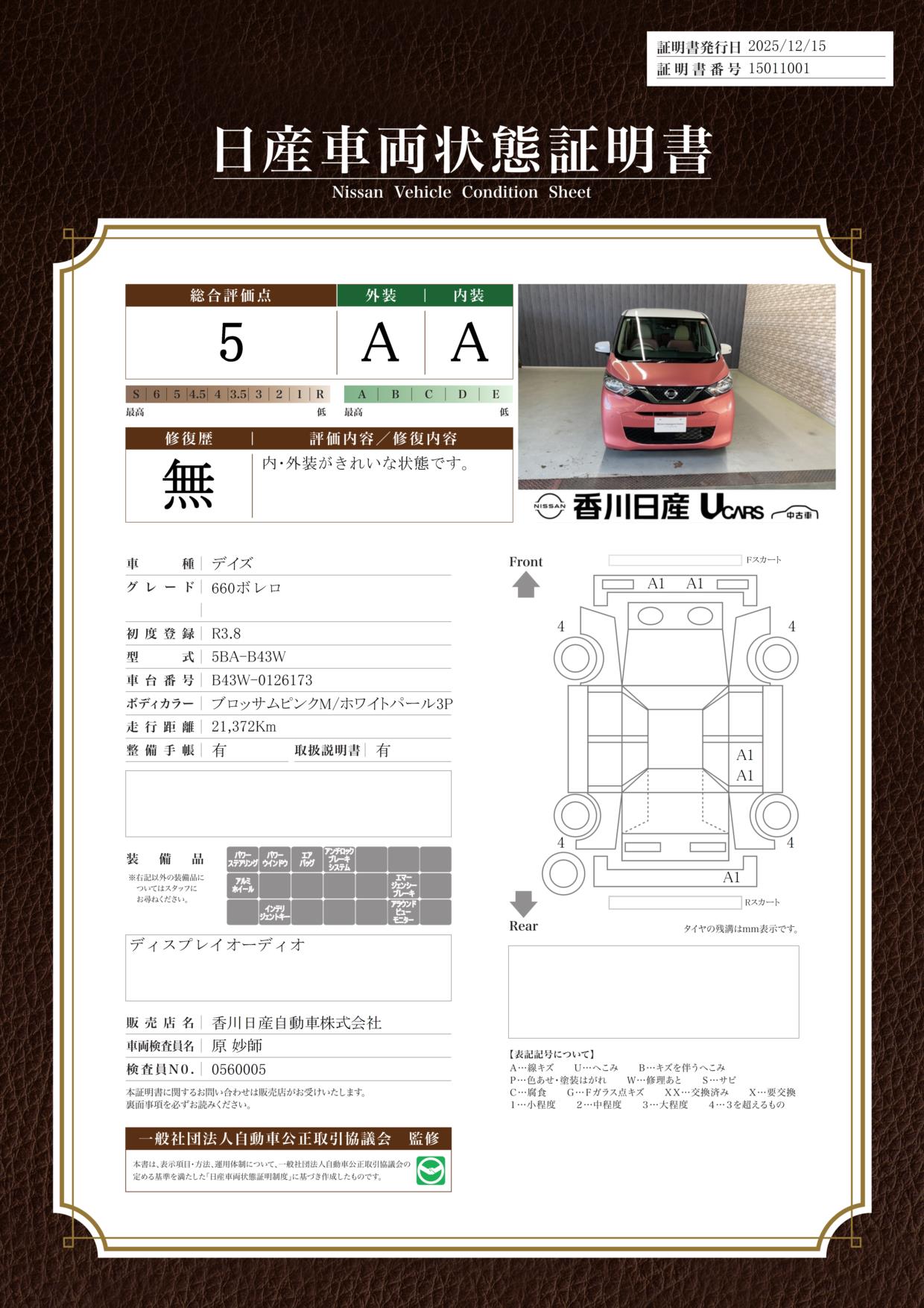 車両状態証明書を見る