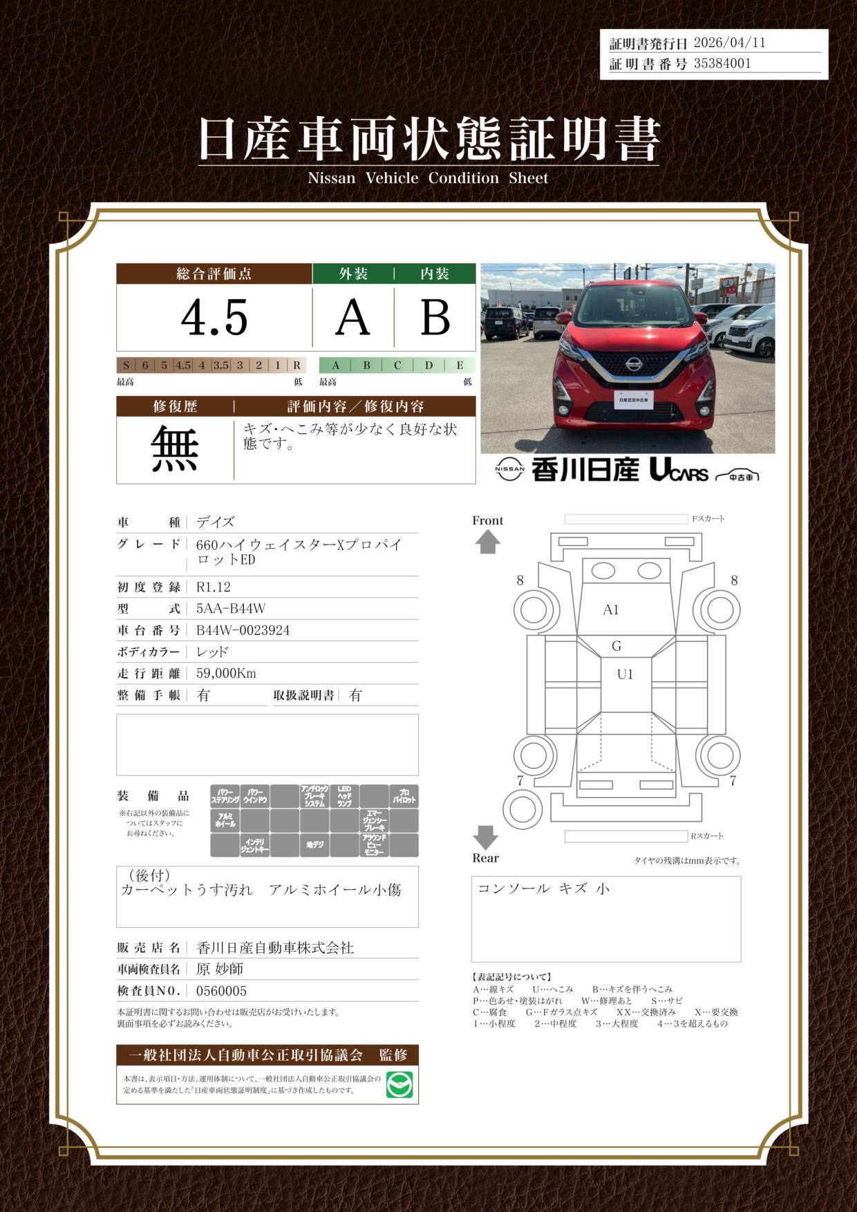 こちらのクルマは 「日産認定中古車」。 だから、4つの安心をお約束。