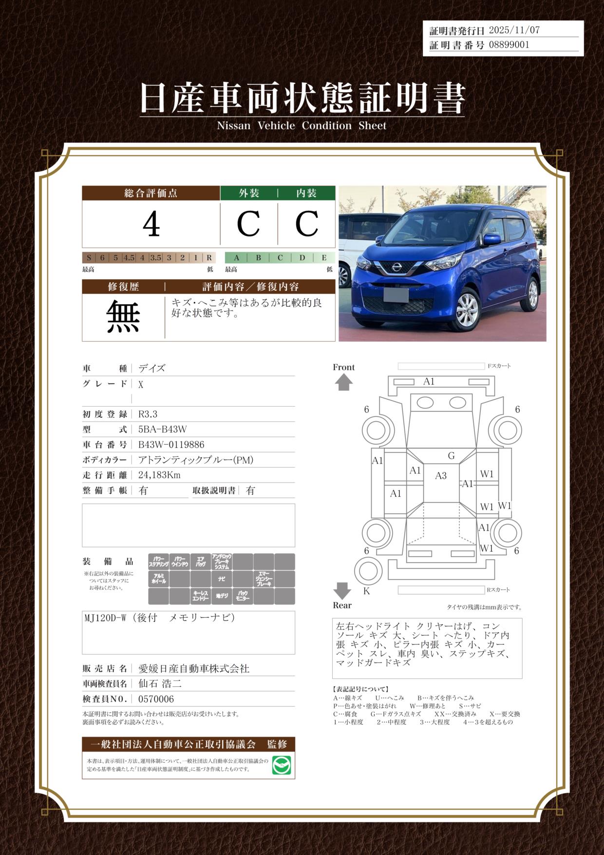 納得のクルマ選が心ゆくまでお手伝いできる「日産クオリティショップ」です。【認定中古車】 車両状態証明書を備えた全メーカー車(修復歴車以外)が対象。安心中古車選びの目印です。