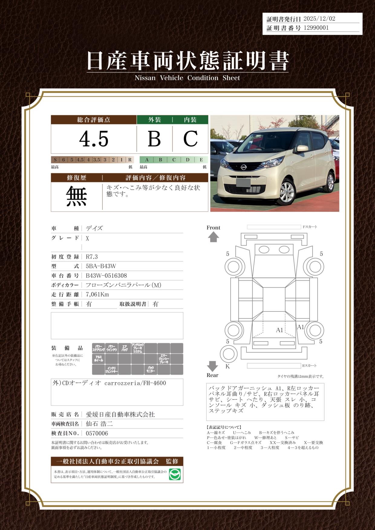 現状括弧書き内の年月まで車検有効期限が残っていますが、ご成約時に新しく車検を取り直します。なお取り直しの費用は車両価格に含まれています。