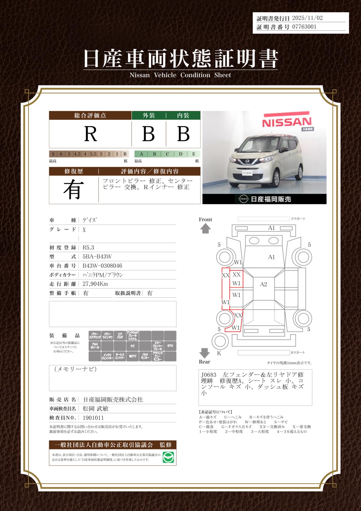 デイズ 660cc 660 X 当社試乗車UP 純正ナビ アラウンドビュー