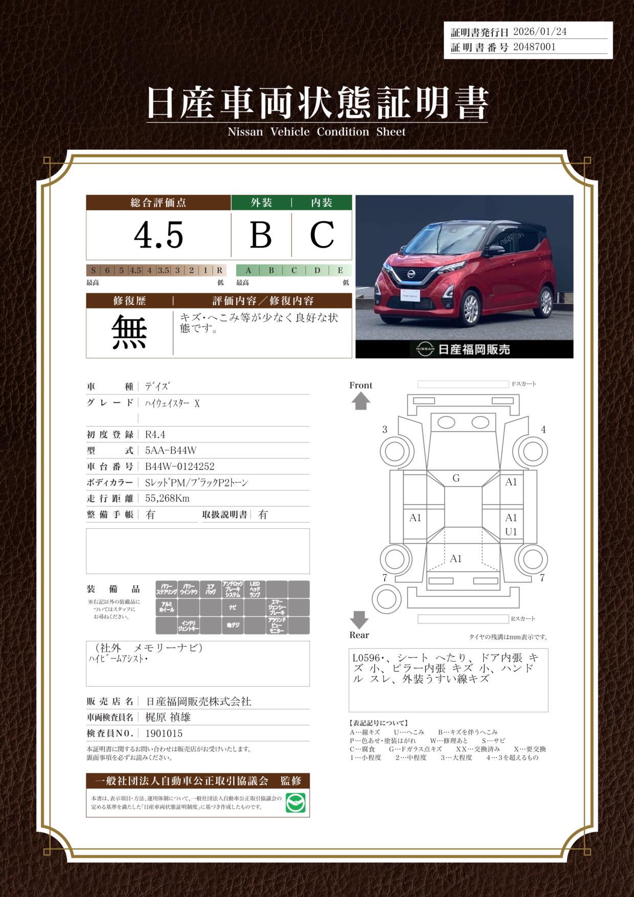 評価機関 : 日産車両状態証明