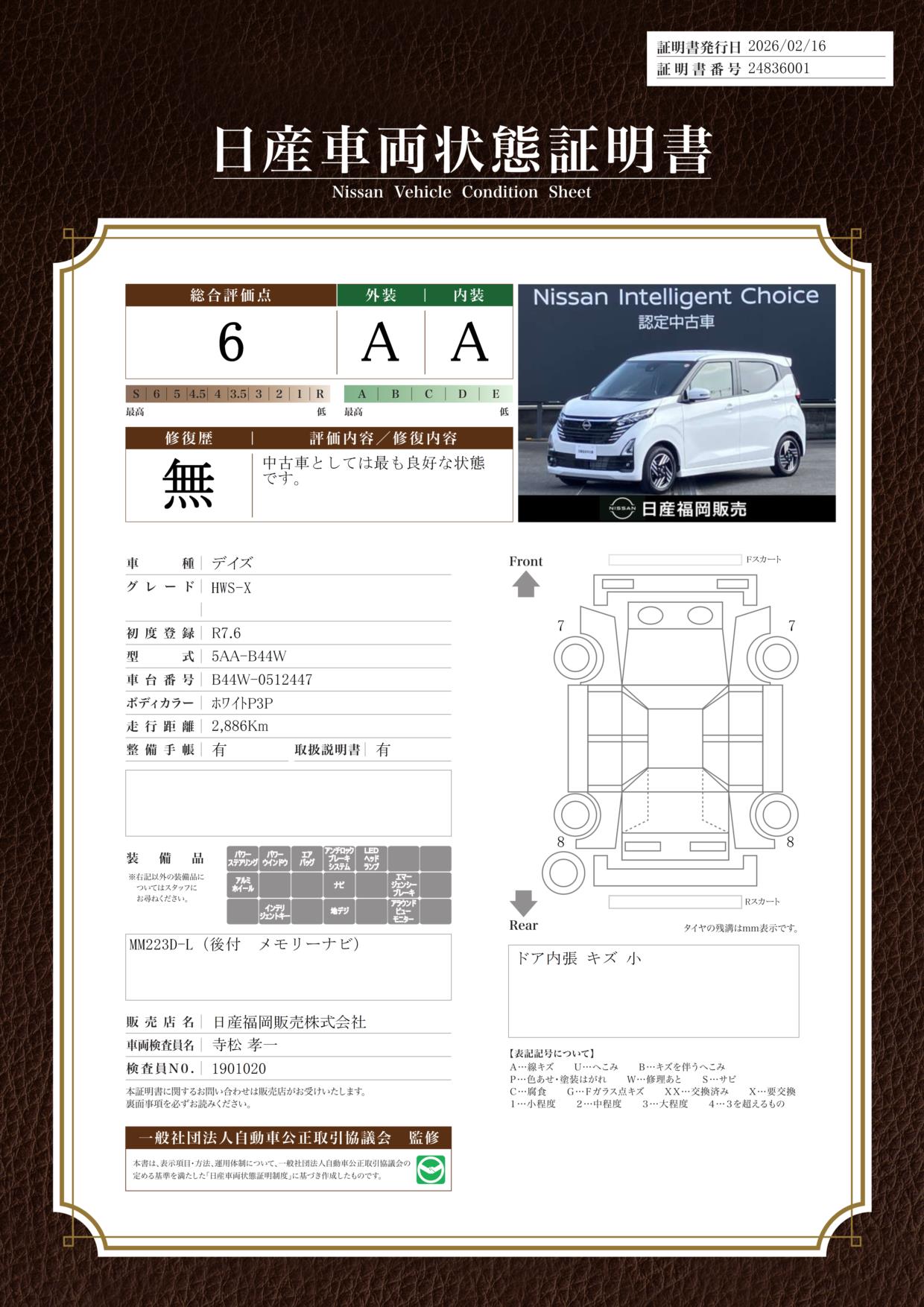 「車両状態証明書」は、査定協会監修のプロの検査員が公正かつ確かな基準で検査した”安心の証”です。
