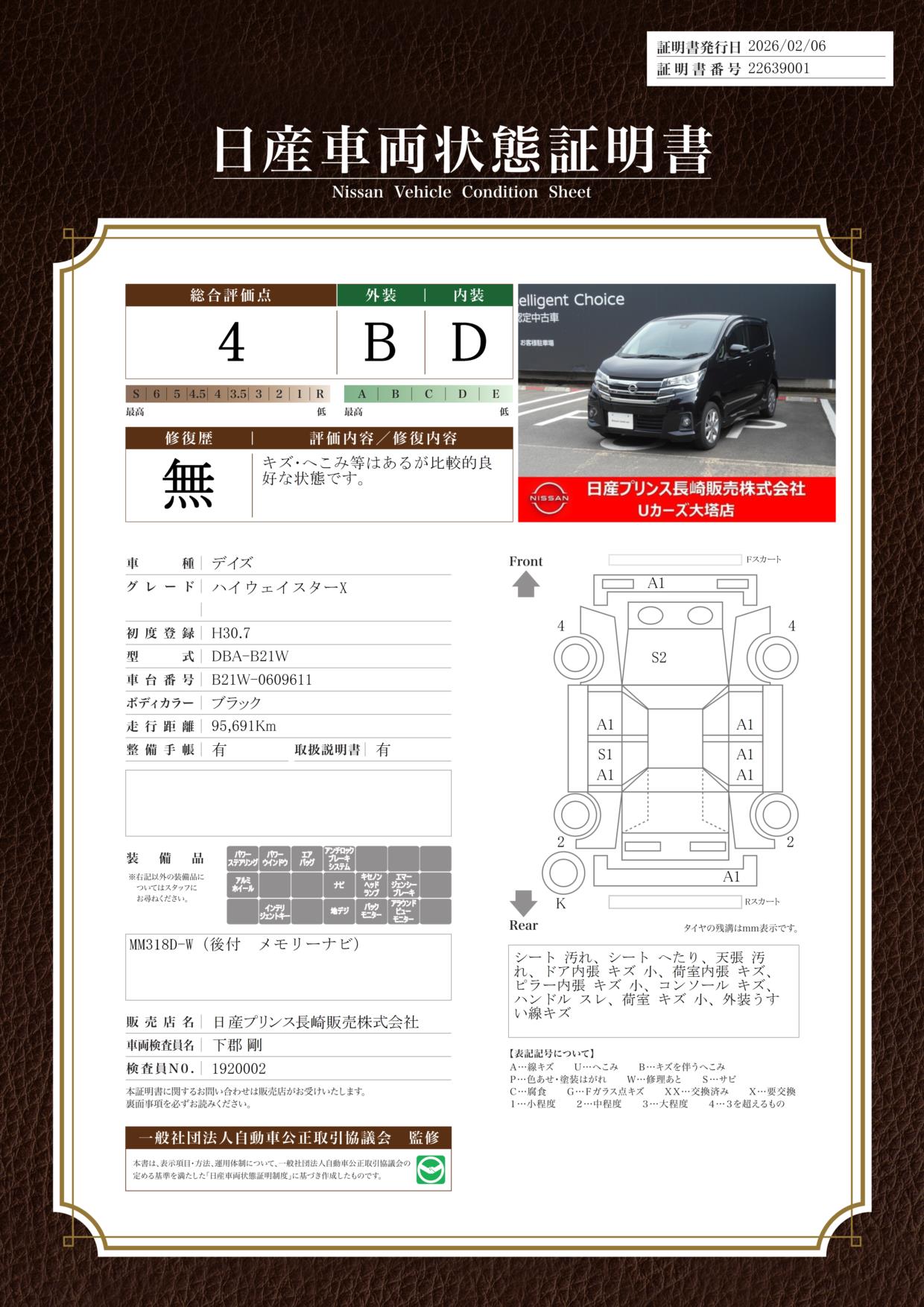 全国の日産で利用可能なワイド保証付きです。さらに2年間の延長も可能です。純正ナビやアラモニなどが付いています。