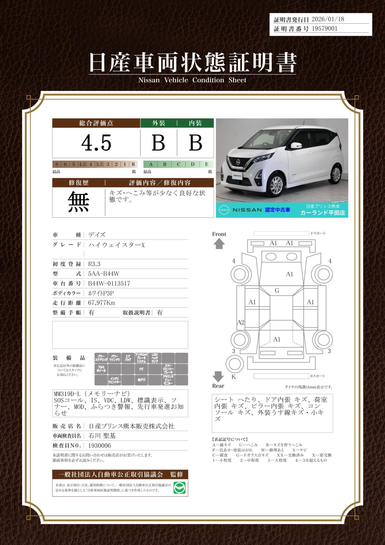 デイズ 660cc 660 ハイウェイスターX アラウンドビューモニター ディーラー保証