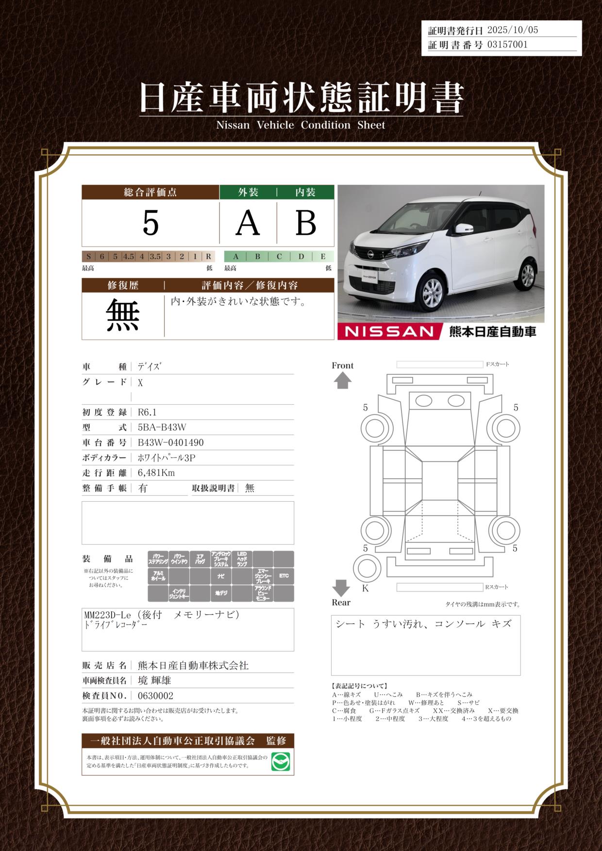 デイズ 660cc 660 X 前・車内ドラレコ 純正ナビ 全周囲カメラ