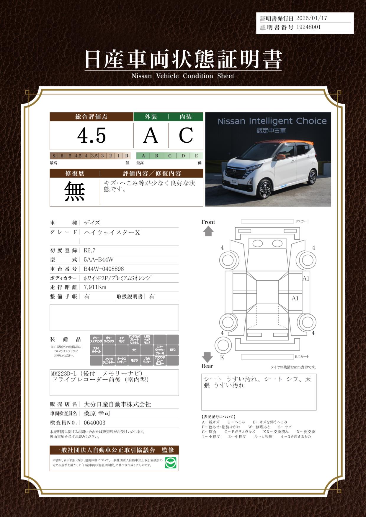 【大分日産自動車プレジールuよりお知らせ】 日頃より当社のお車をご覧になって頂きまして誠にありがとうございます。 現在当店では掲載しているお車をプレジール店を中心に別府石垣店、中津店、佐伯店、竹田店にて展示をさせて頂いてる場合がございます。気になったお車がございましたら、097-543-1137へ事前に在庫のお問い合わせをお願い致します!(1月の定休日 1日~6日 13日14日20日21日27日)
