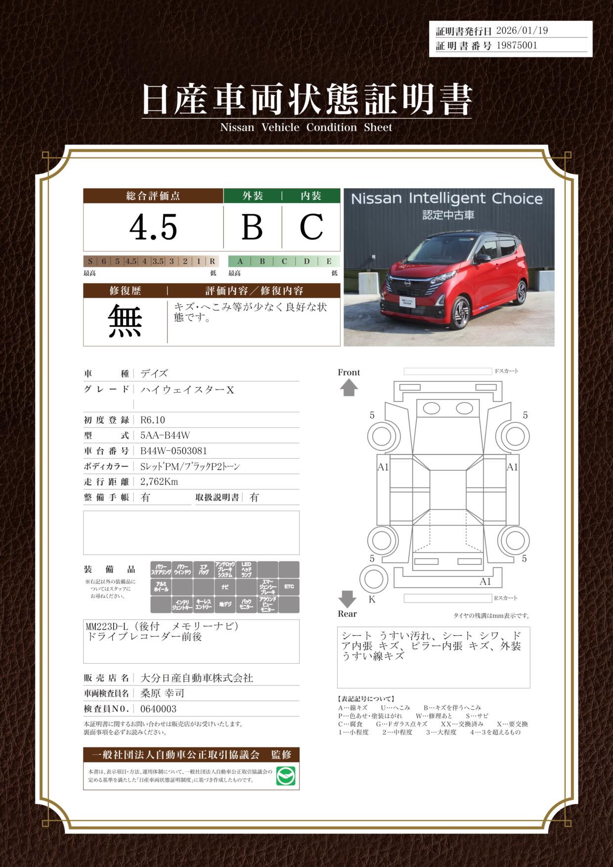 【大分日産自動車プレジールuよりお知らせ】 日頃より当社のお車をご覧になって頂きまして誠にありがとうございます。 現在当店では掲載しているお車をプレジール店を中心に別府石垣店、中津店、佐伯店、竹田店にて展示をさせて頂いてる場合がございます。気になったお車がございましたら、097-543-1137へ事前に在庫のお問い合わせをお願い致します!(1月の定休日 1日~6日 13日14日20日21日27日)