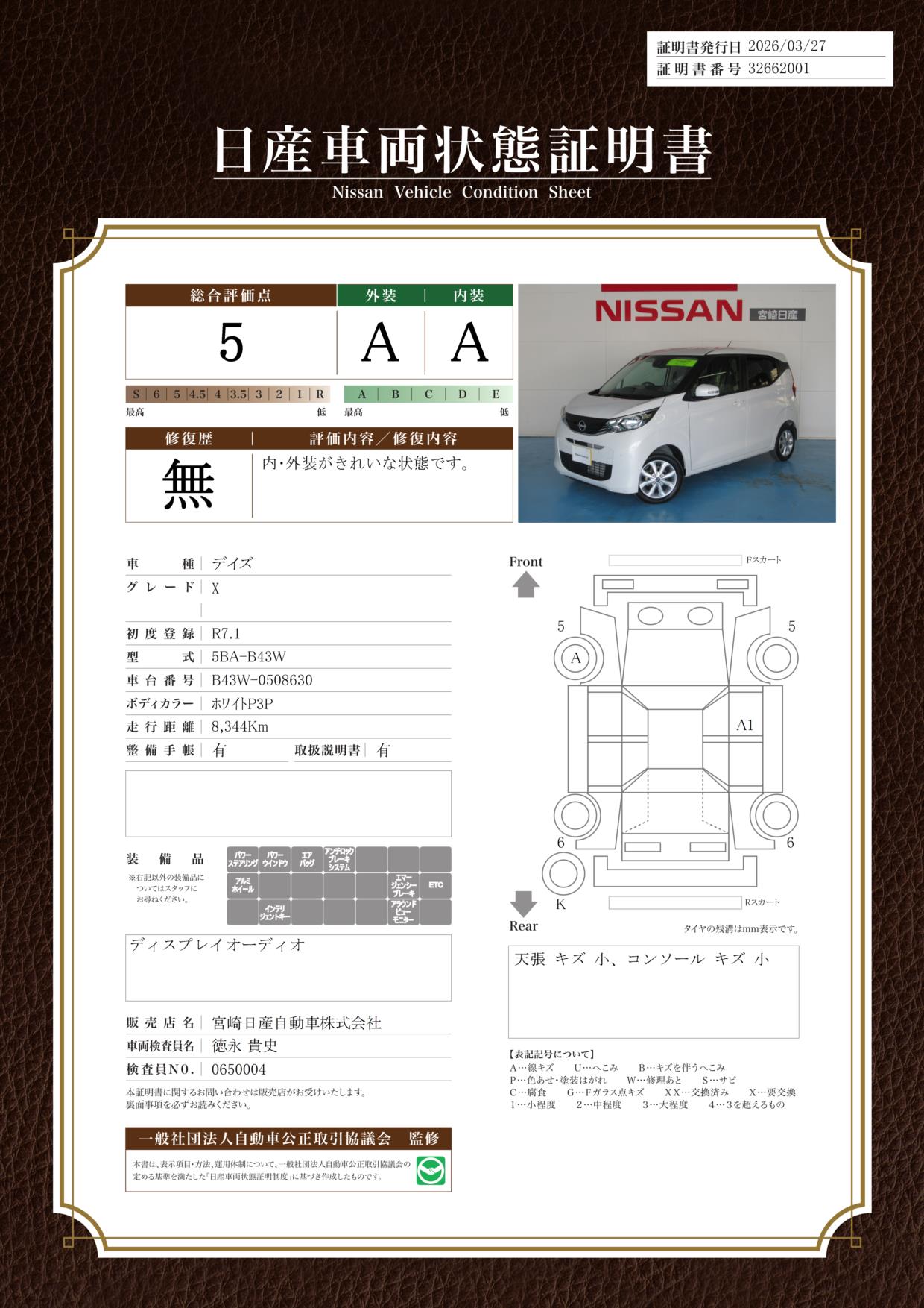 「車両状態証明書」は、査定協会監修のプロの検査員が公正かつ確かな基準で検査した”安心の証”です。