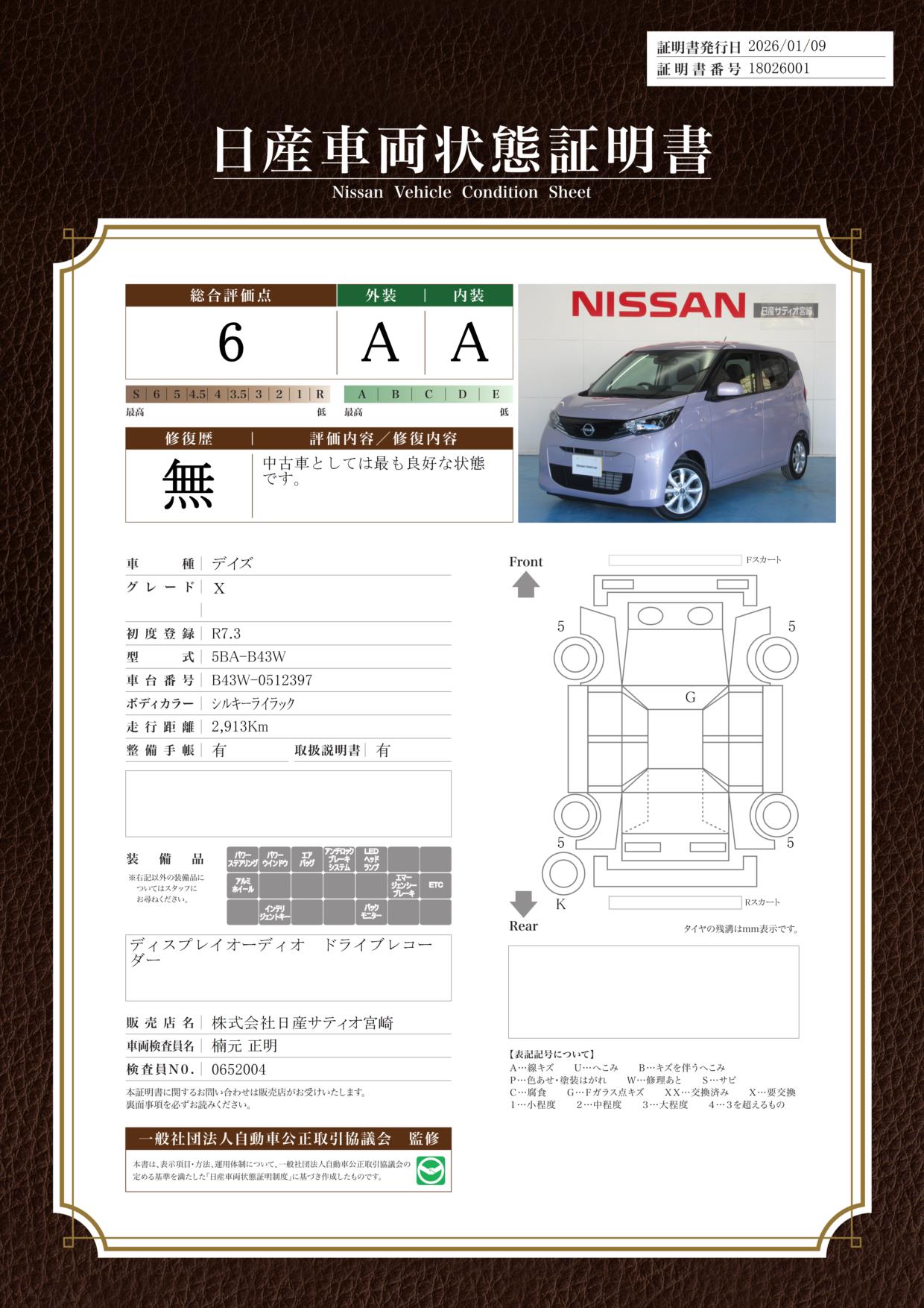 デイズ X 被害軽減ブレーキ(対歩行者)踏み間違い時加速抑制装置などを装備した車両です ドラレコ&バックモニターが走行や駐車をアシストしてくれます