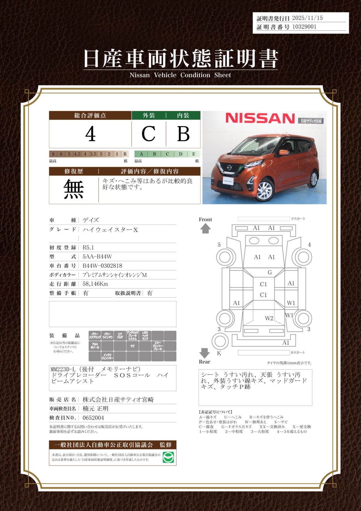 この度は当店を検索頂き誠にありがとうございます。今話題のe-Powerや100%電気で走る軽自動車サクラ、安全装置搭載車を多数展示!価格は総額表示で分りやすく、更に日産のワイド保証付で安心!お買得車を多数ご準備して、ご来場を心よりお待ちしております。12月は『冬のお買得中古車フェア!』を開催!期間R7年12月1日(月)~12月29日(月)迄。毎週、火・水曜日が定休日。