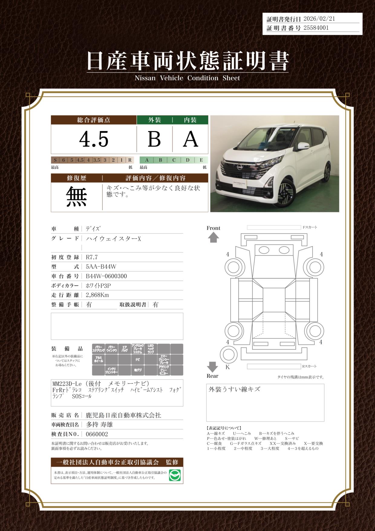 この度は、数多くの日産中古車店舗の中から鹿児島日産カーパレス国分の展示車両をご覧いただき誠にありがとうございます。当店は、日産ディーラー販売店ならではの保証やサービス工場と隣接した店舗の為アフターサービスに自信あり!親身な対応で、お客様に満足していただけるお車をご提案致します。3月7日・8日は決算大感謝祭を開催!。皆さまのお越しをスタッフ一同心よりお待ちしております。3月の定休日は、4日・10日・11日・17日・18日・25日になります。