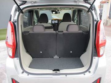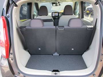 日産デイズ 後部席は倒せて広いラゲッジルームとしても使用出来ます。ドライブレコーダー衝突軽減ブレーキ装備で安心