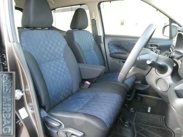 プレミアムコンビネーションインテリアとなっております。合皮とトリコットのシート地は上質感があり、落ち着きのある基調となってます。是非一度、展示場へお越し下さい。