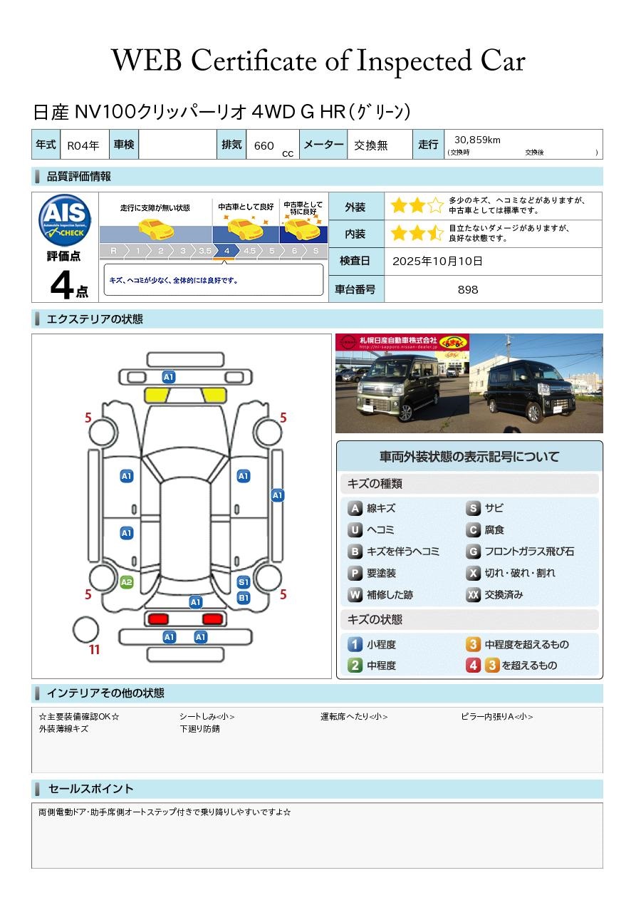 NV100クリッパーリオ 660cc 660 G ハイルーフ 4WD フルセグ社外メモリーナビ